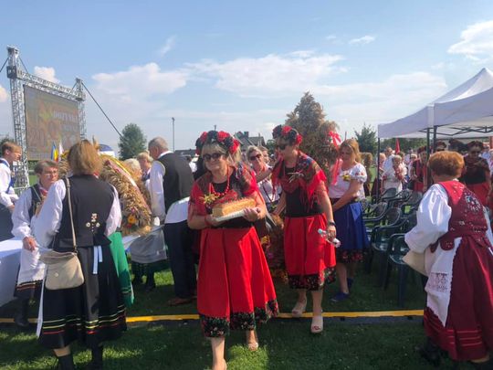 W czasie trwania rolniczego święta nieodłącznym symbolem dostatku i gościnności jest chleb. Bochen niesiony przez