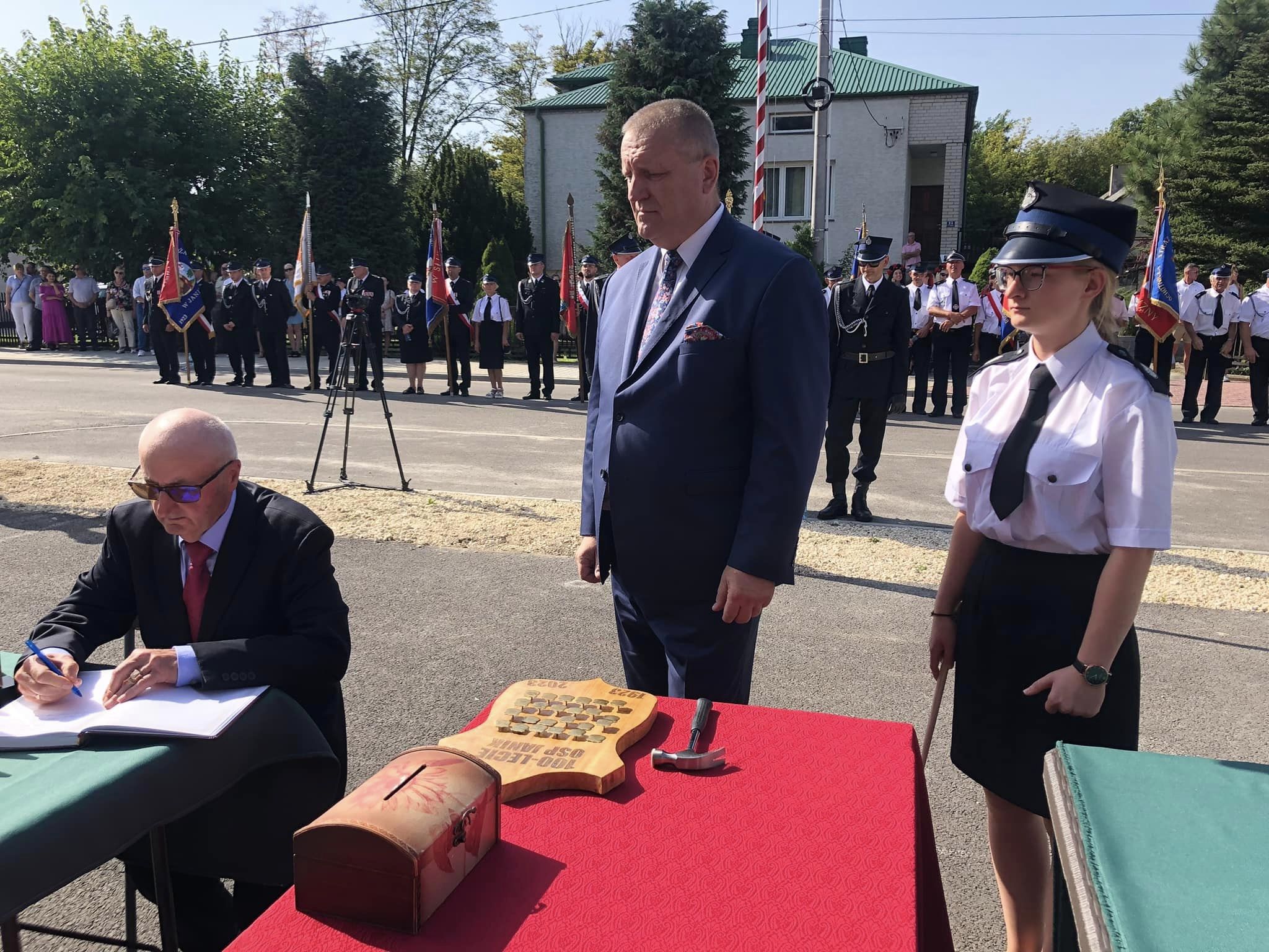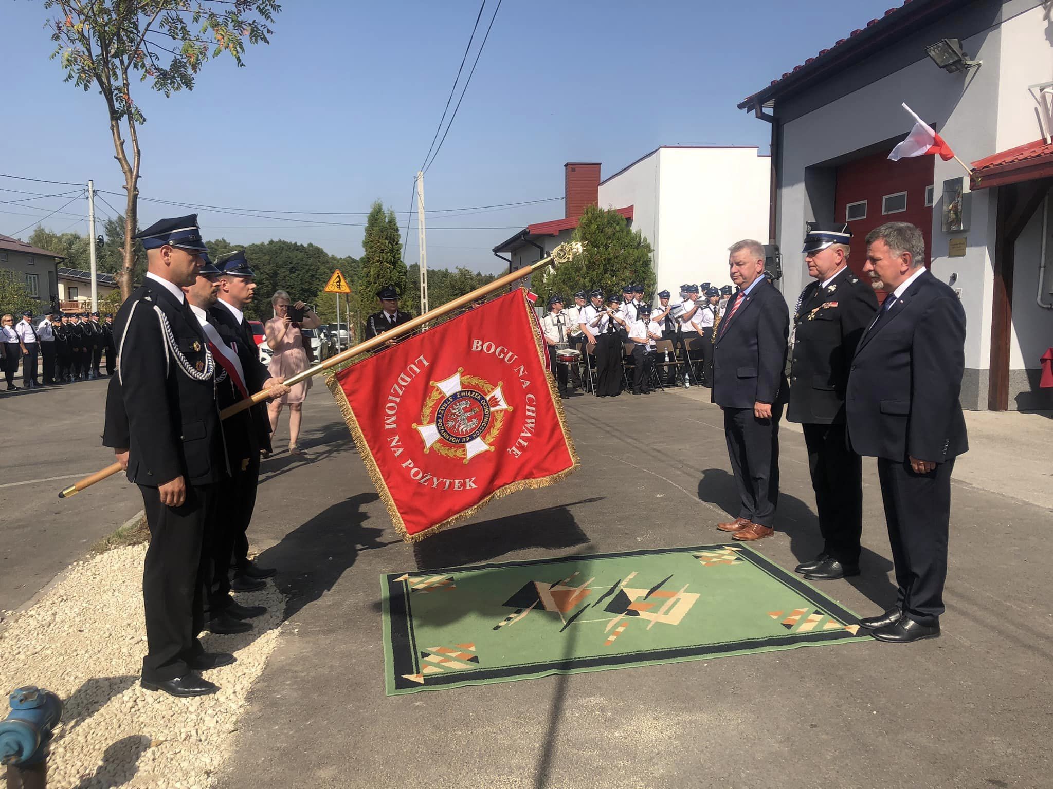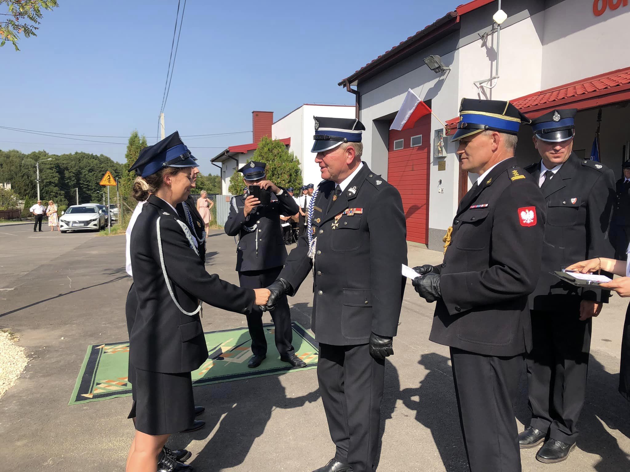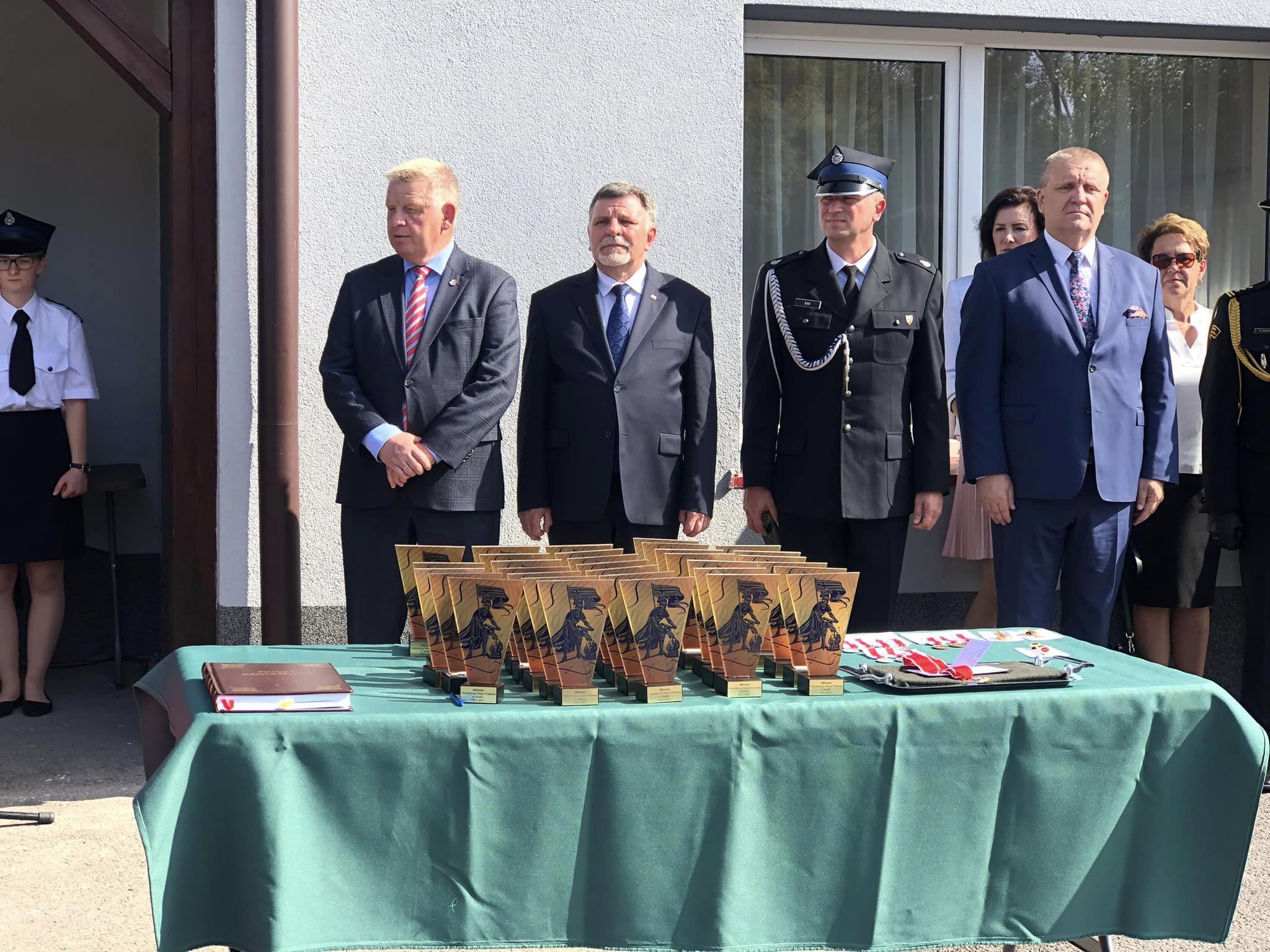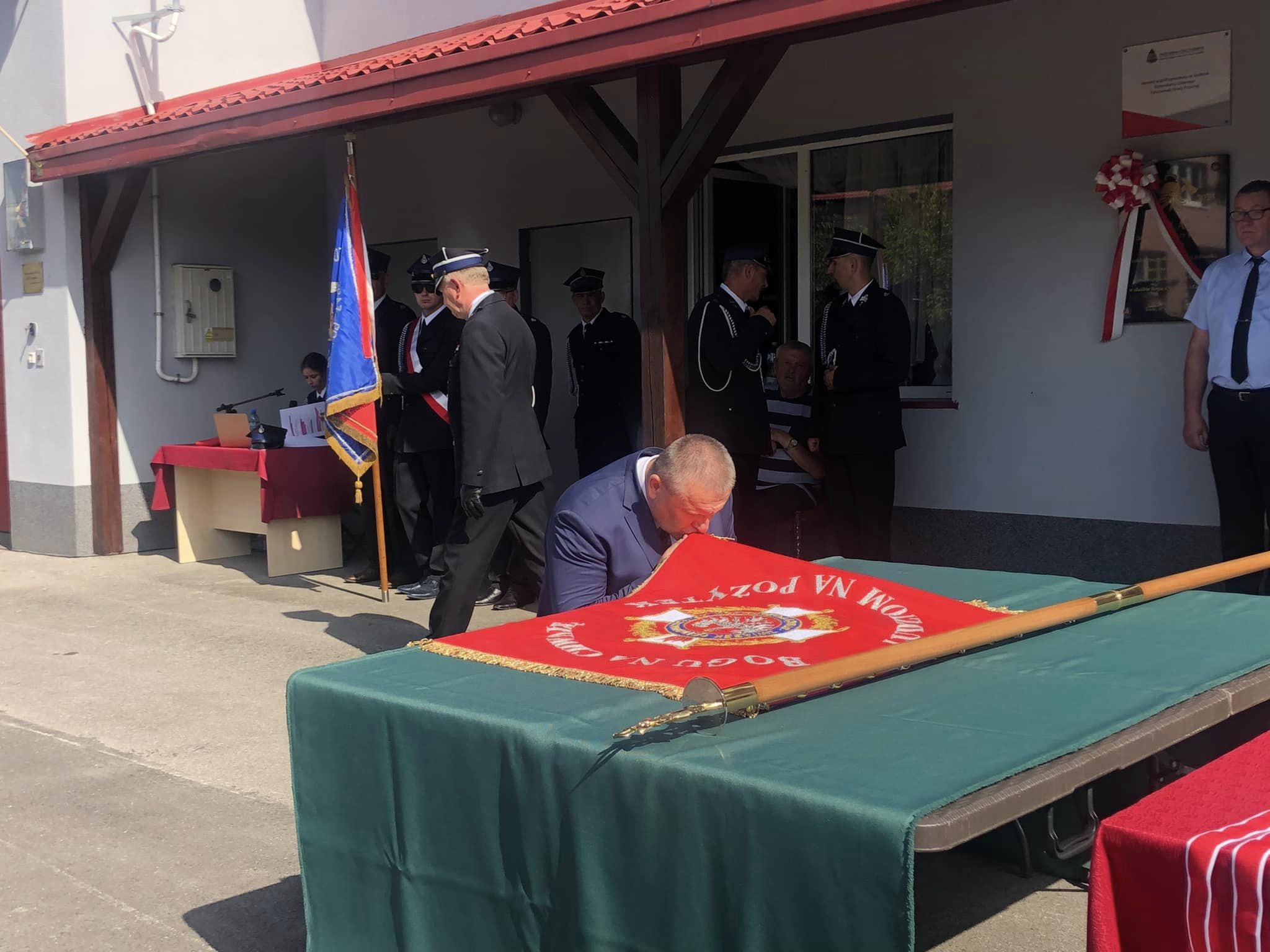 Jubileusz był okazją przekazania druhom życzeń i gratulacji. W tym wyjątkowym dla niuch słowa uznania za codzienną służbę na rzecz drugiego człowieka do ochotników skierowali między innymi: senator Jarosław Rusiecki, poseł Andrzej Kryj, przewodniczący Sejmiku Województwa Świętokrzyskiego Arkadiusz Bąk. Miłym akcentem niedzielnej uroczystości było odsłonięcie pamiątkowej tablicy, wmurowanej w ścianę frontową strażnicy.