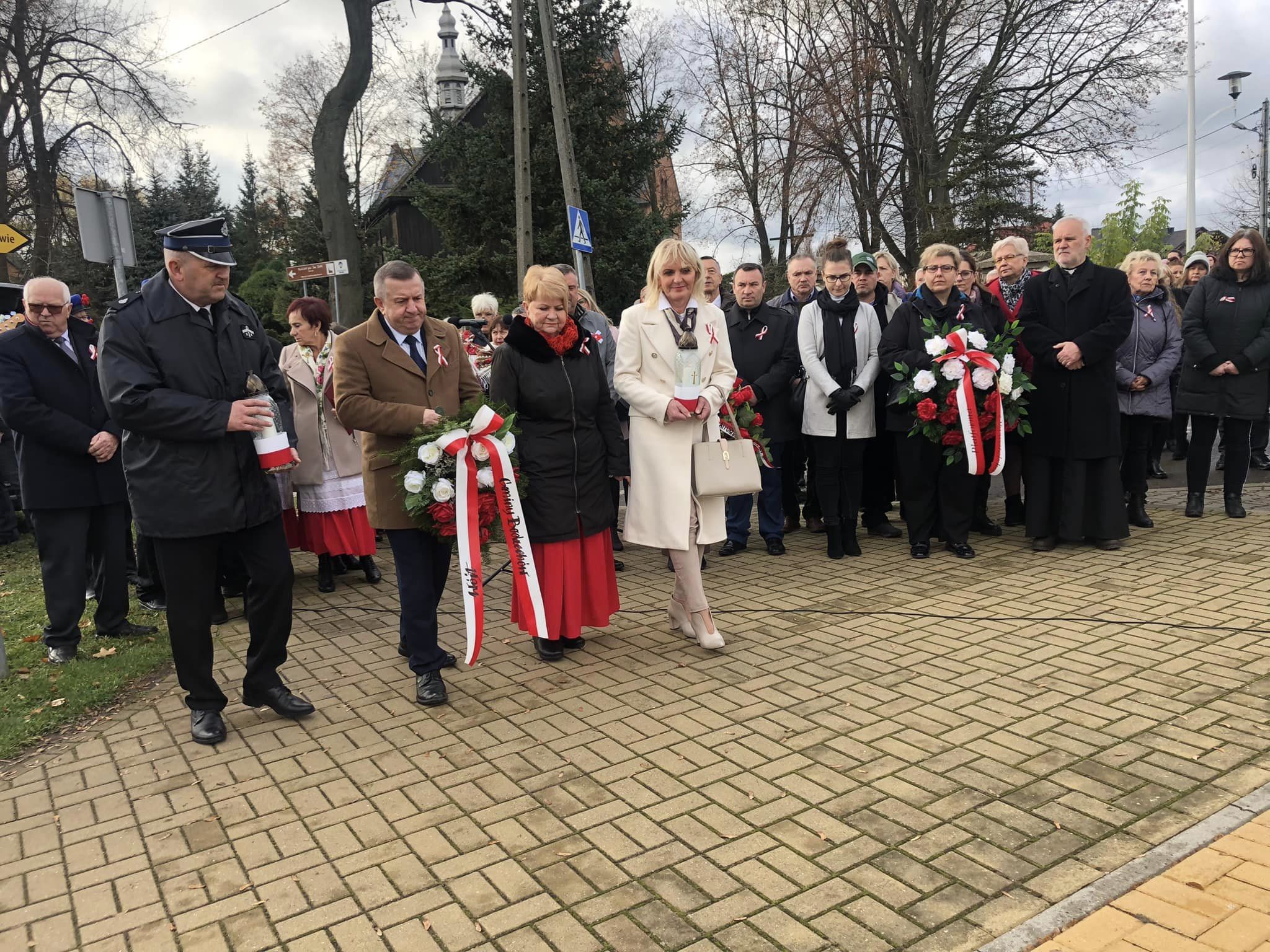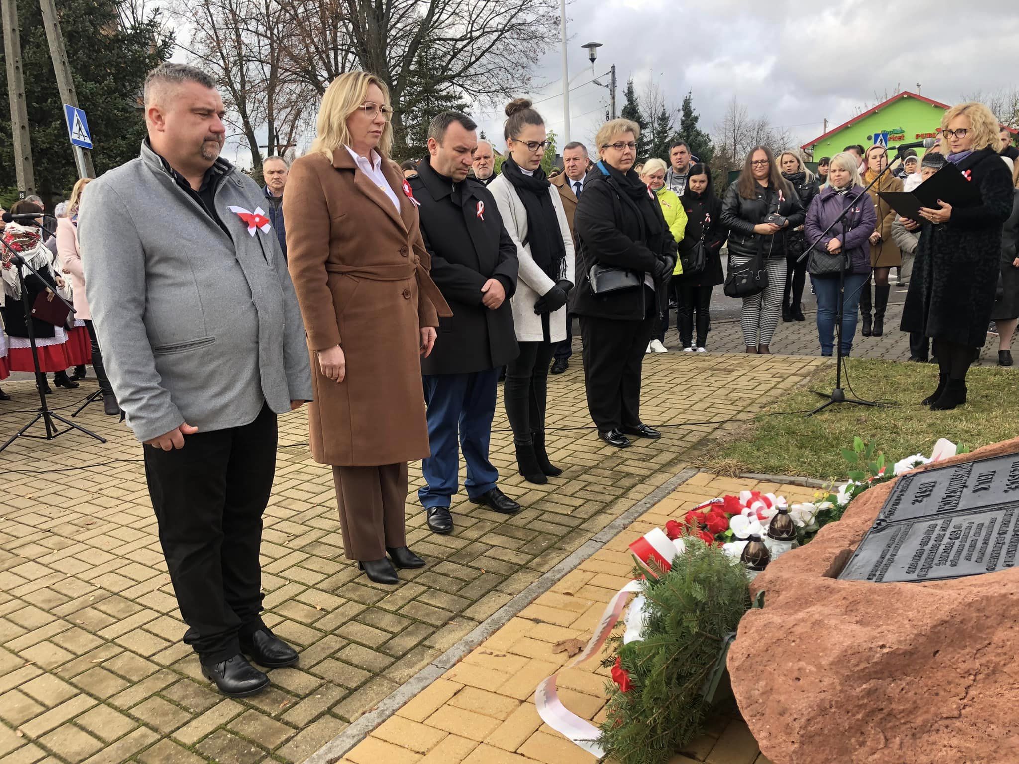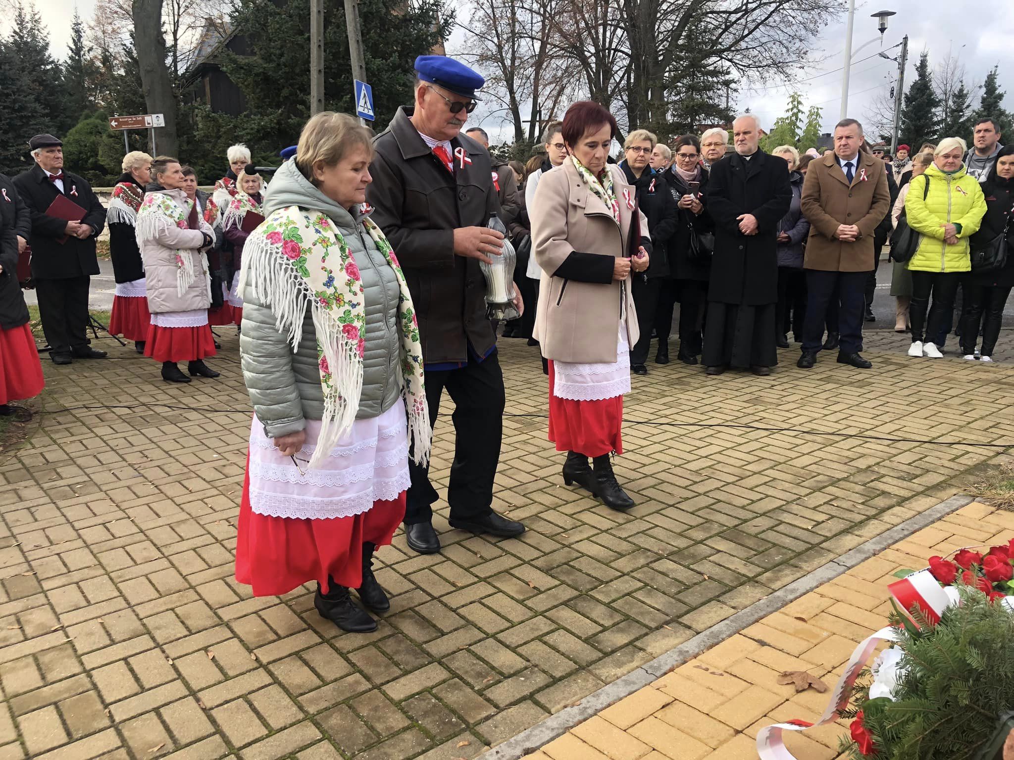 Po nabożeństwie uczestnicy świątecznego spotkania przeszli przed obelisk Bohaterów Powstania Styczniowego. Tam złożono kwiaty i zapalono znicze.