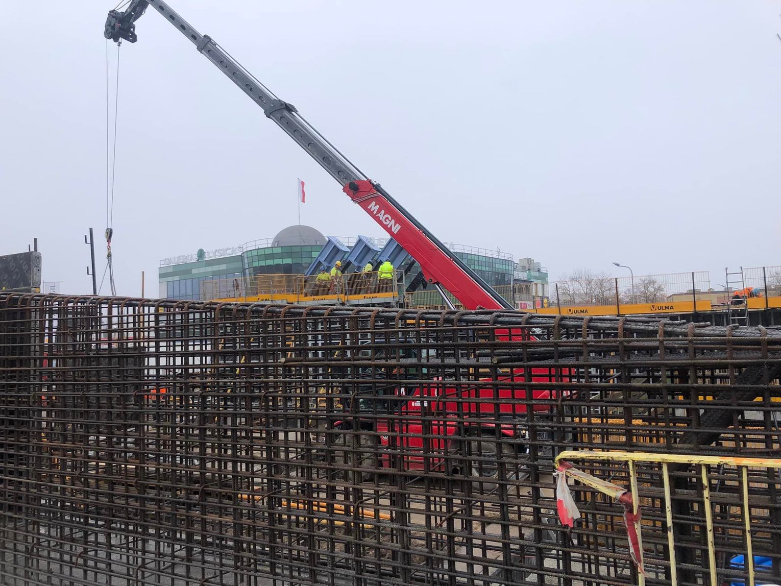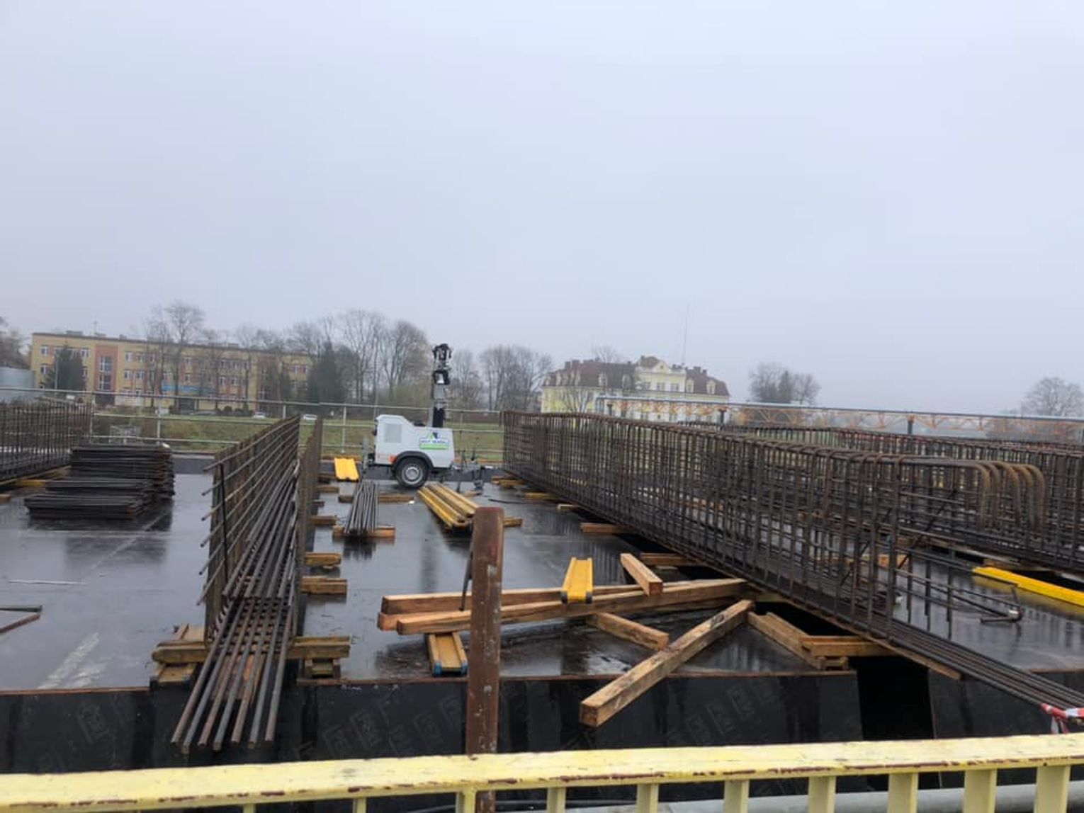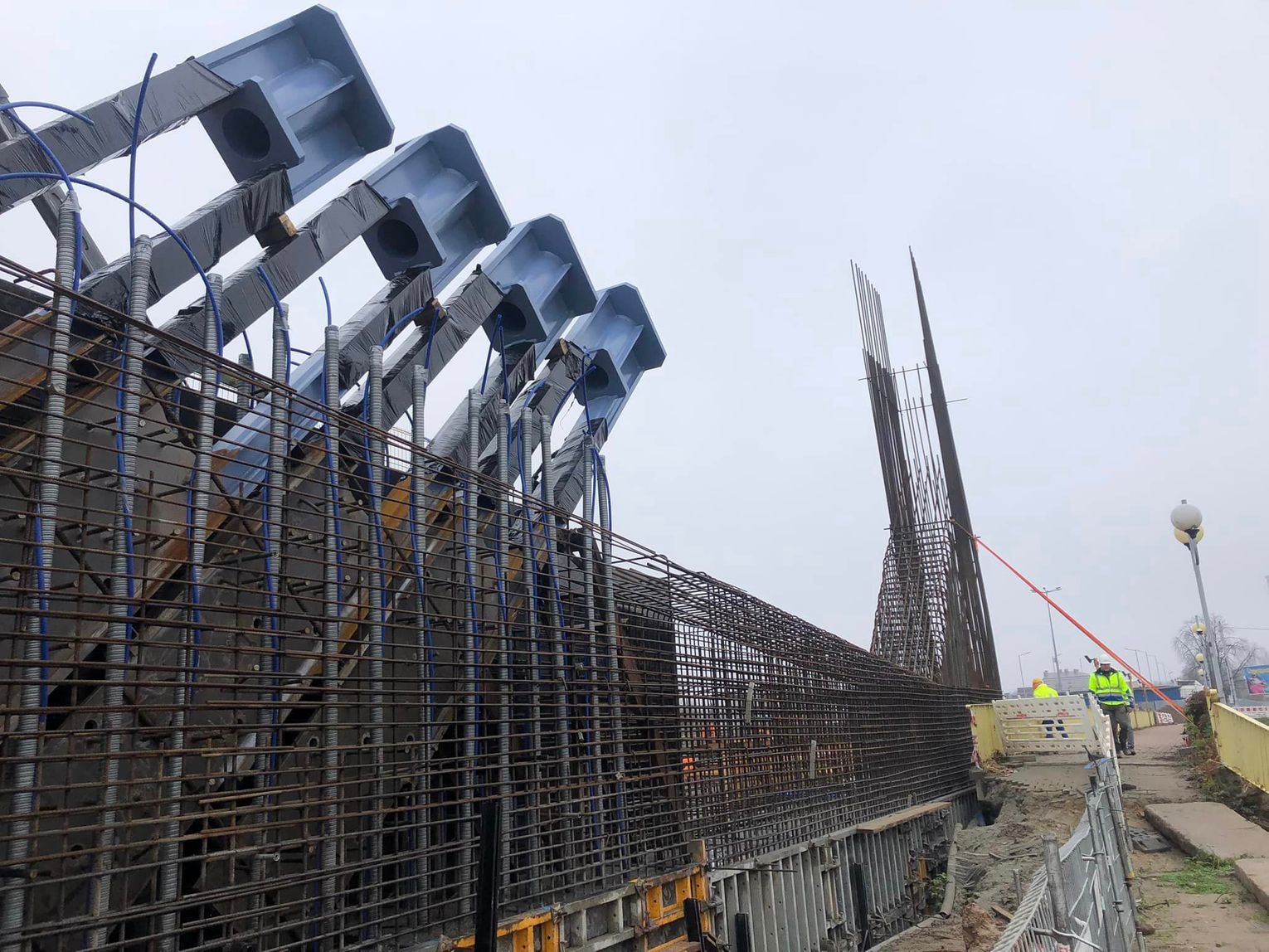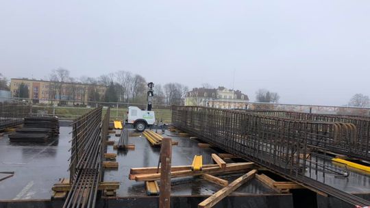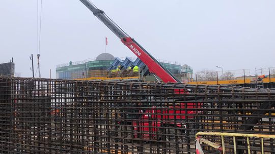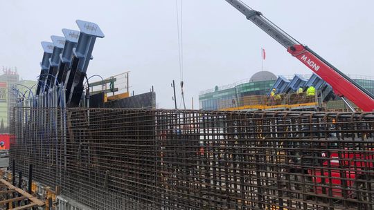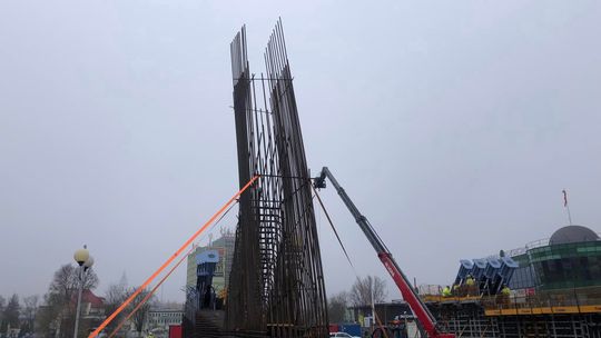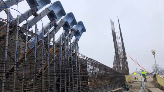 Mamy około 500 ton stali, 1600 metrów sześciennych betonu. Rozpiętość obiektu to około 65 metrów, wysokość pylonu będzie około 25 metrów