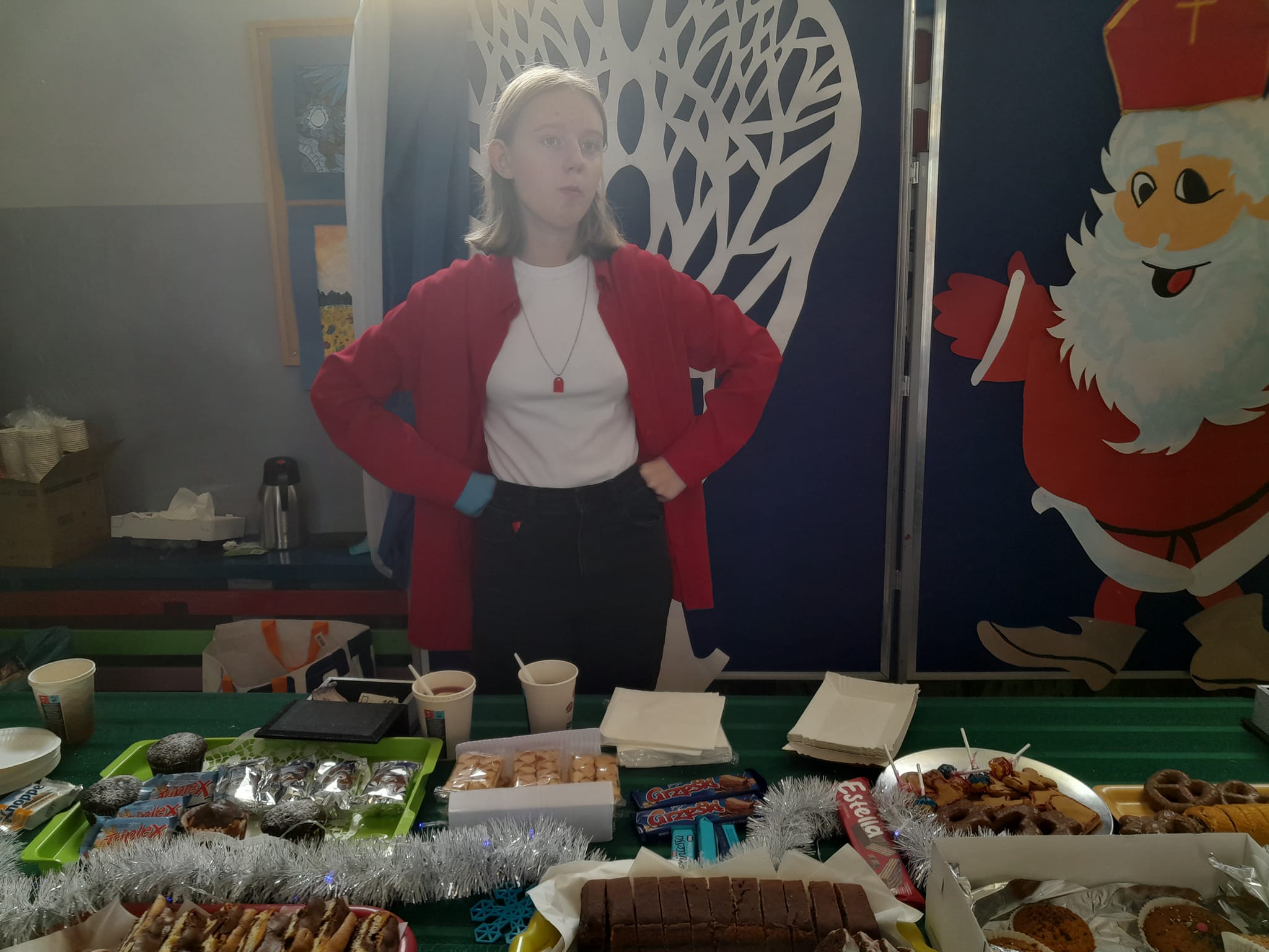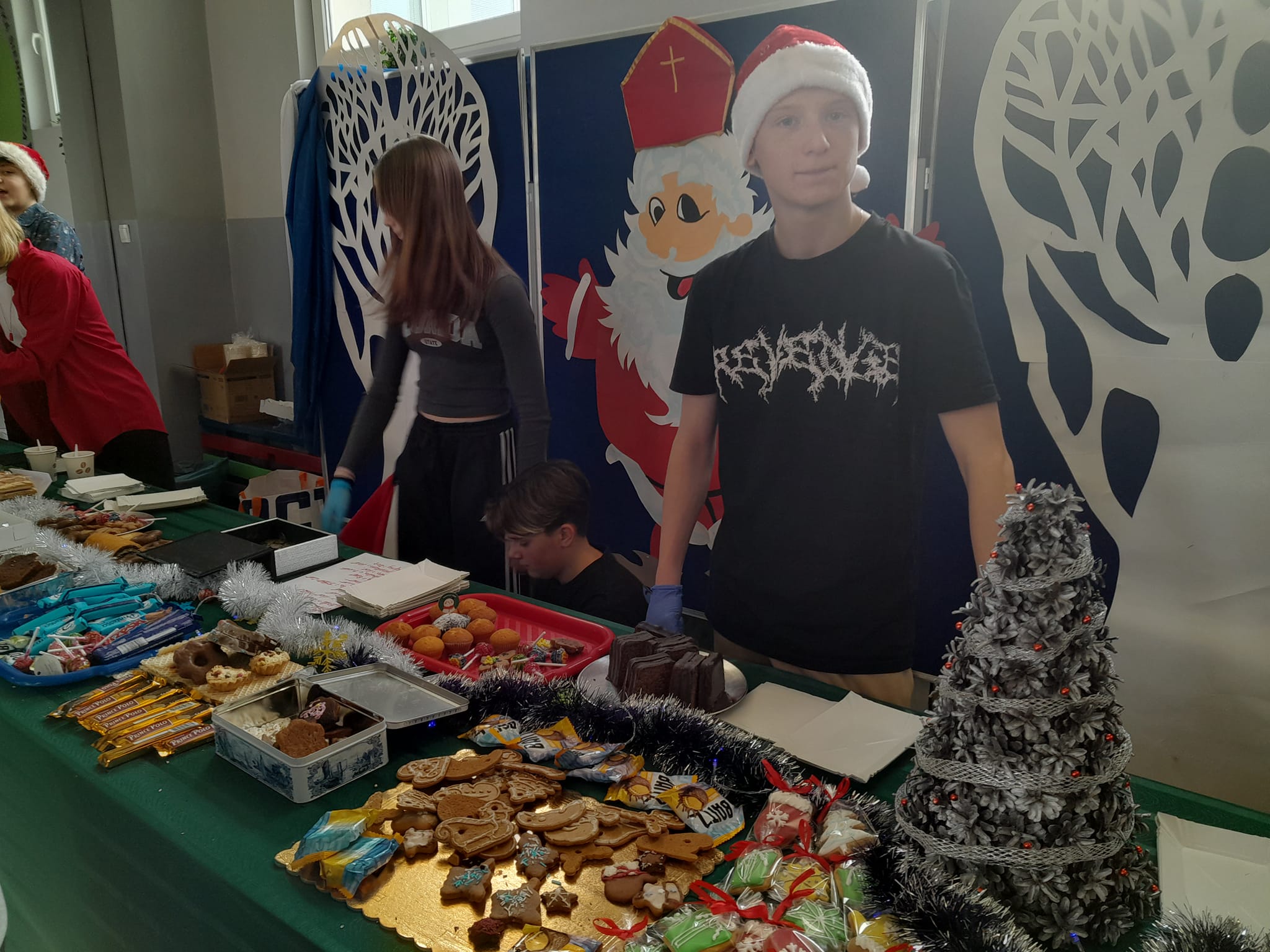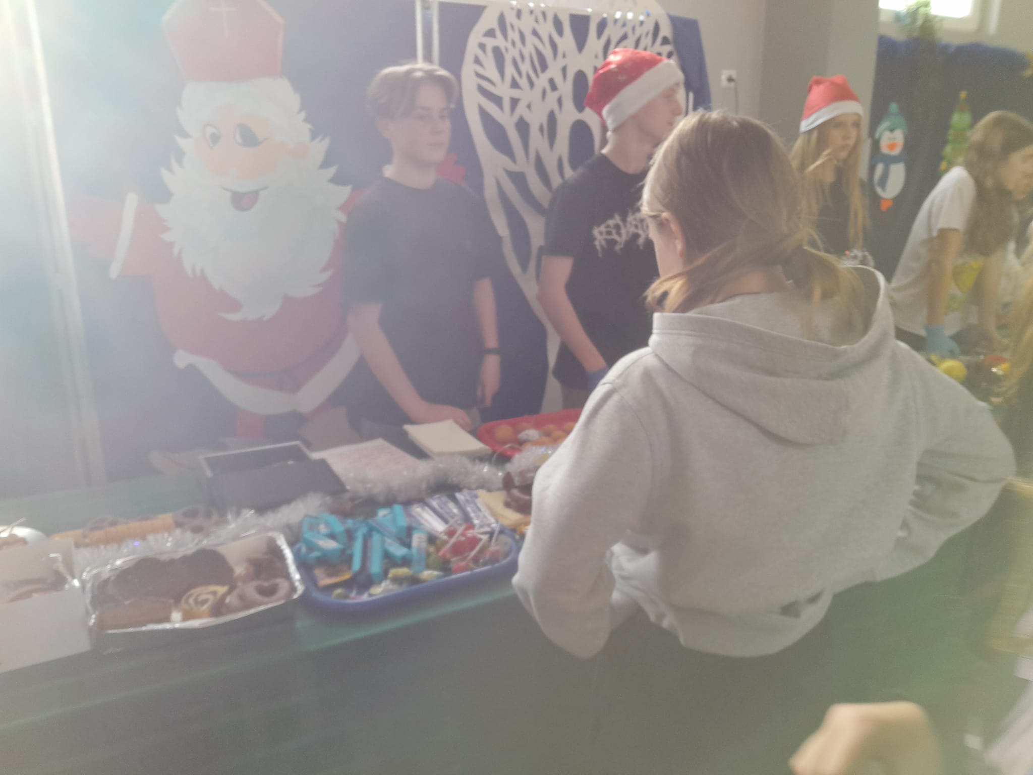 Wypieki świąteczne, bombki, stroiki i inne ozdoby można było zakupić na szkolnym korytarzu.