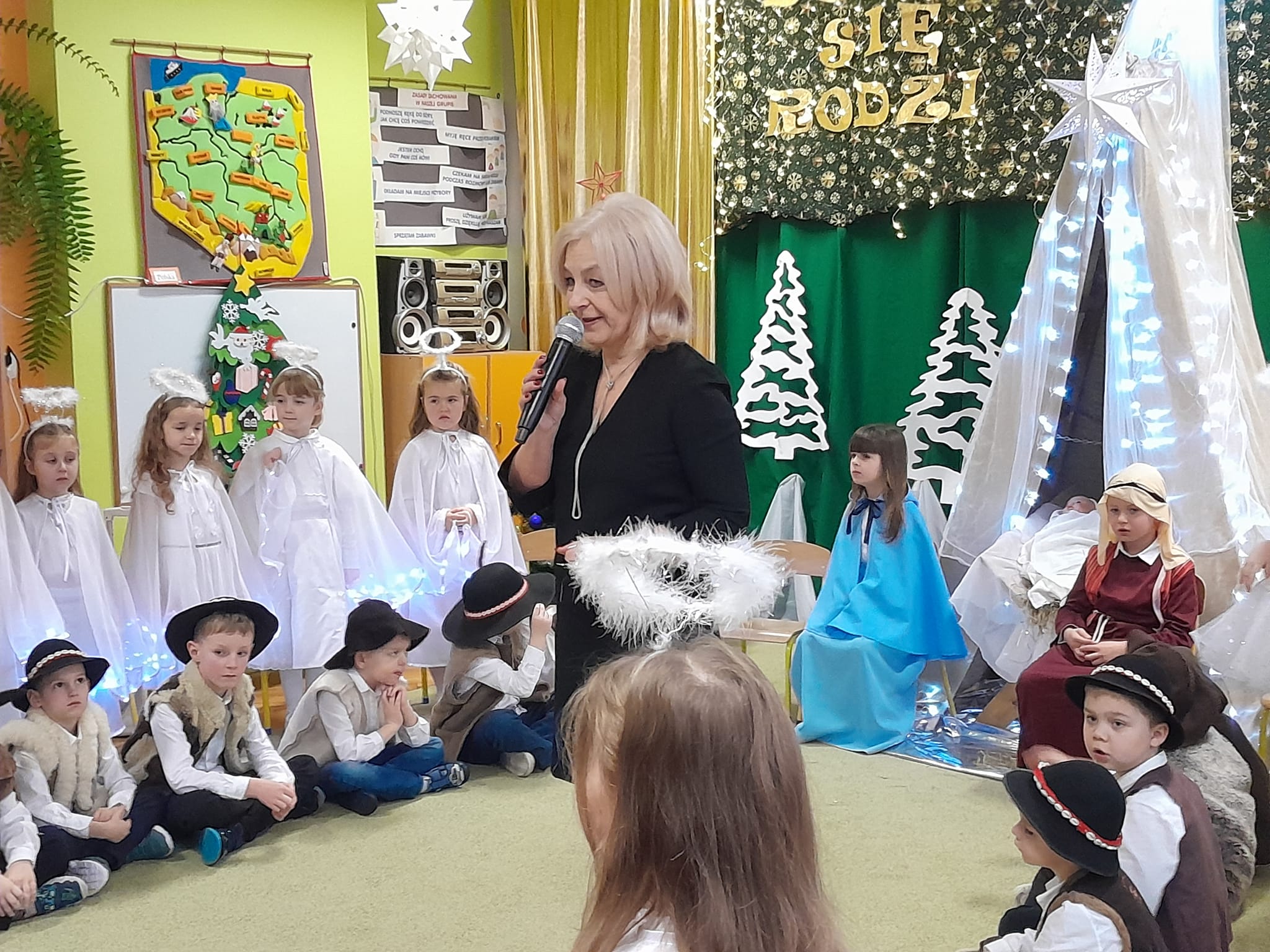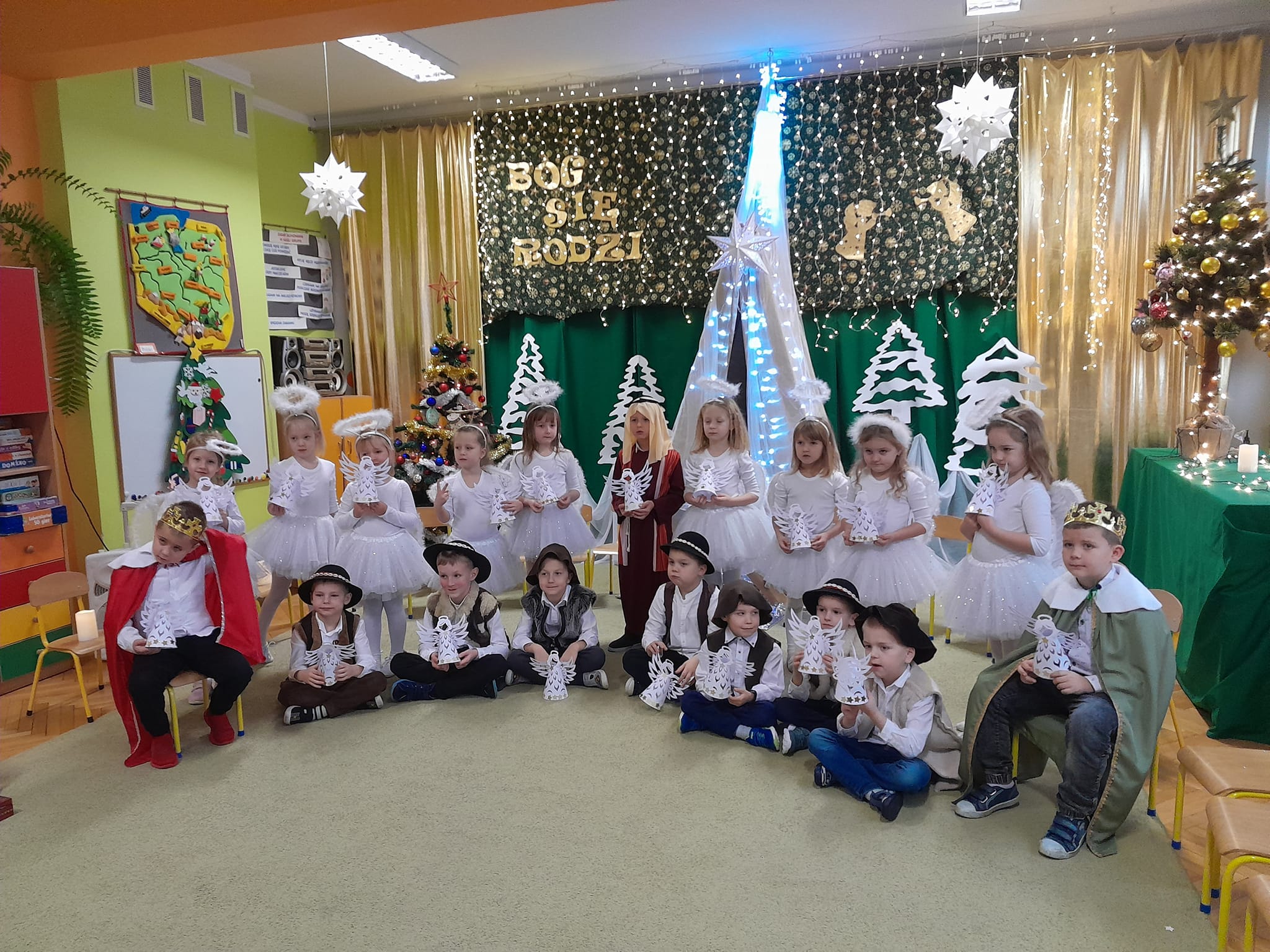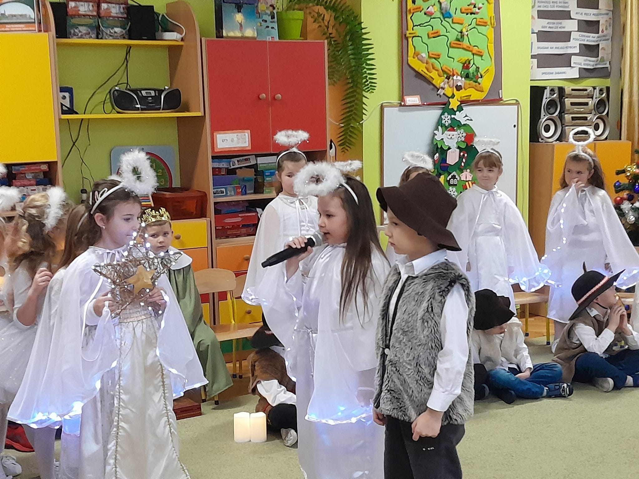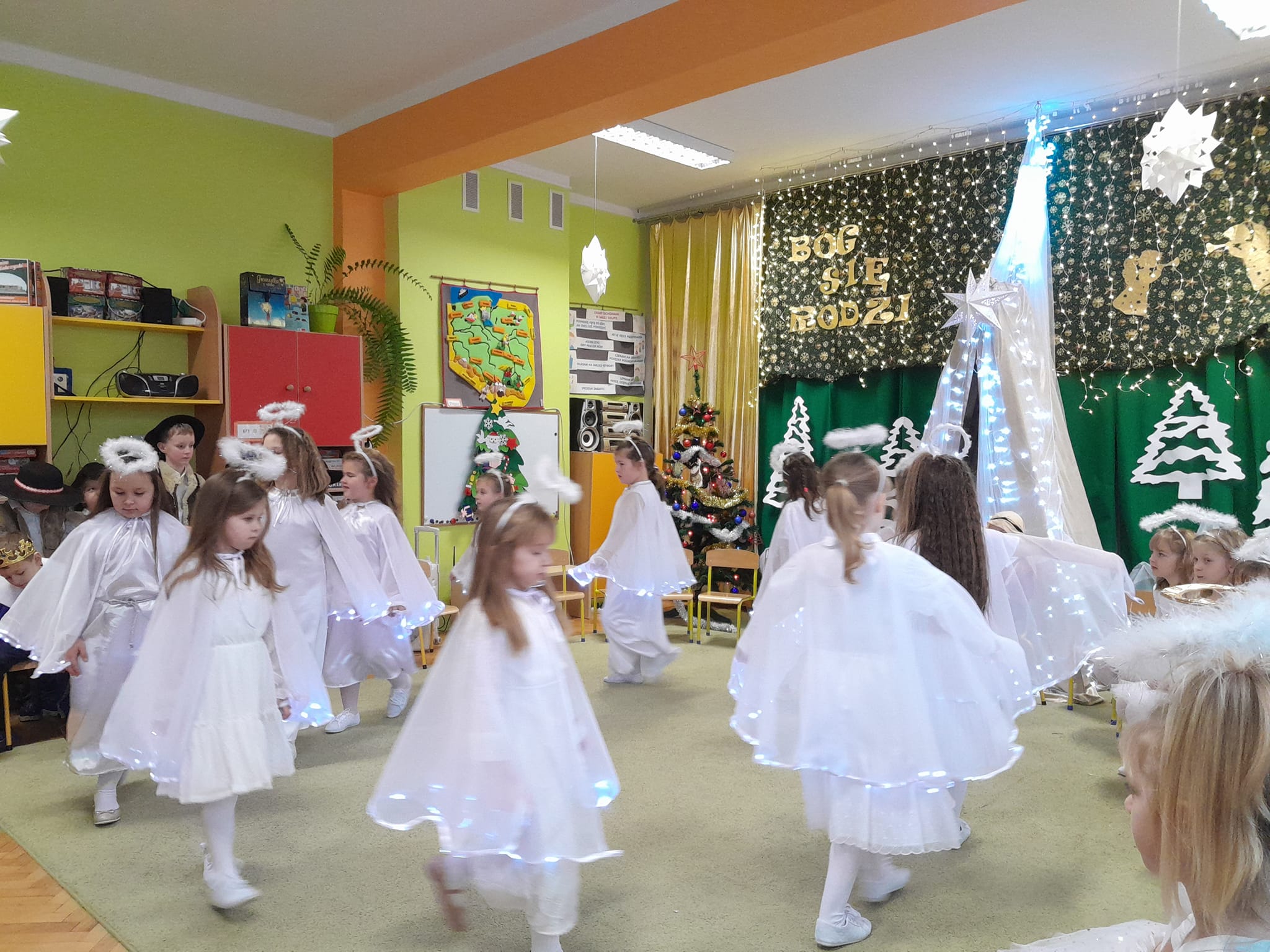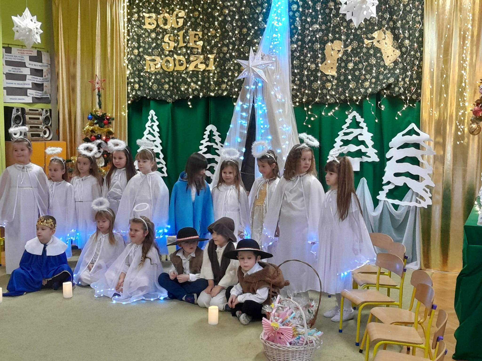 Przedstawienie bożonarodzeniowe w wykonaniu dzieci 5 i 6-cio letnich z grupy IV "Pszczółki" i grupy V "Motylki" obejrzeli rodzice oraz zaproszeni goście.