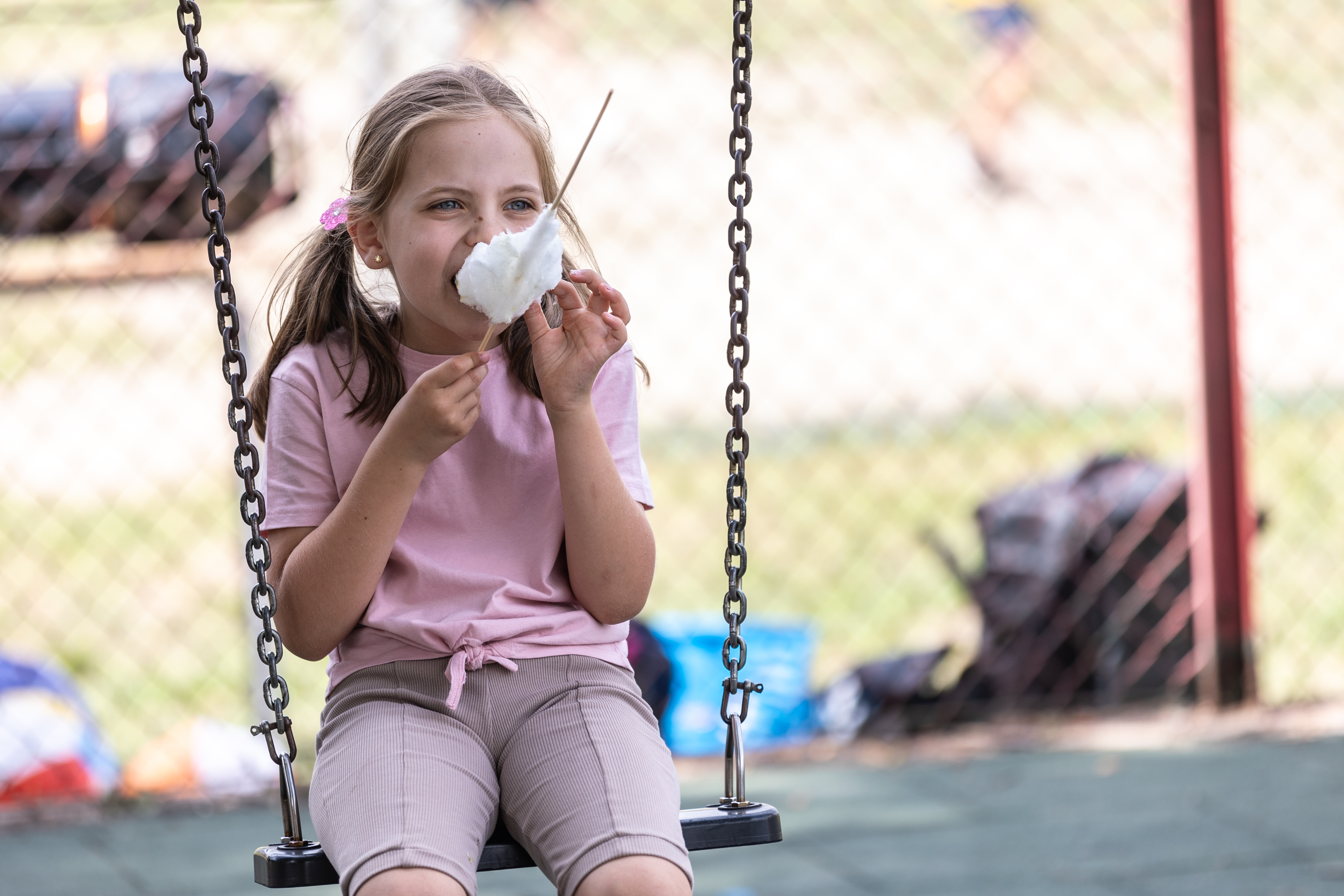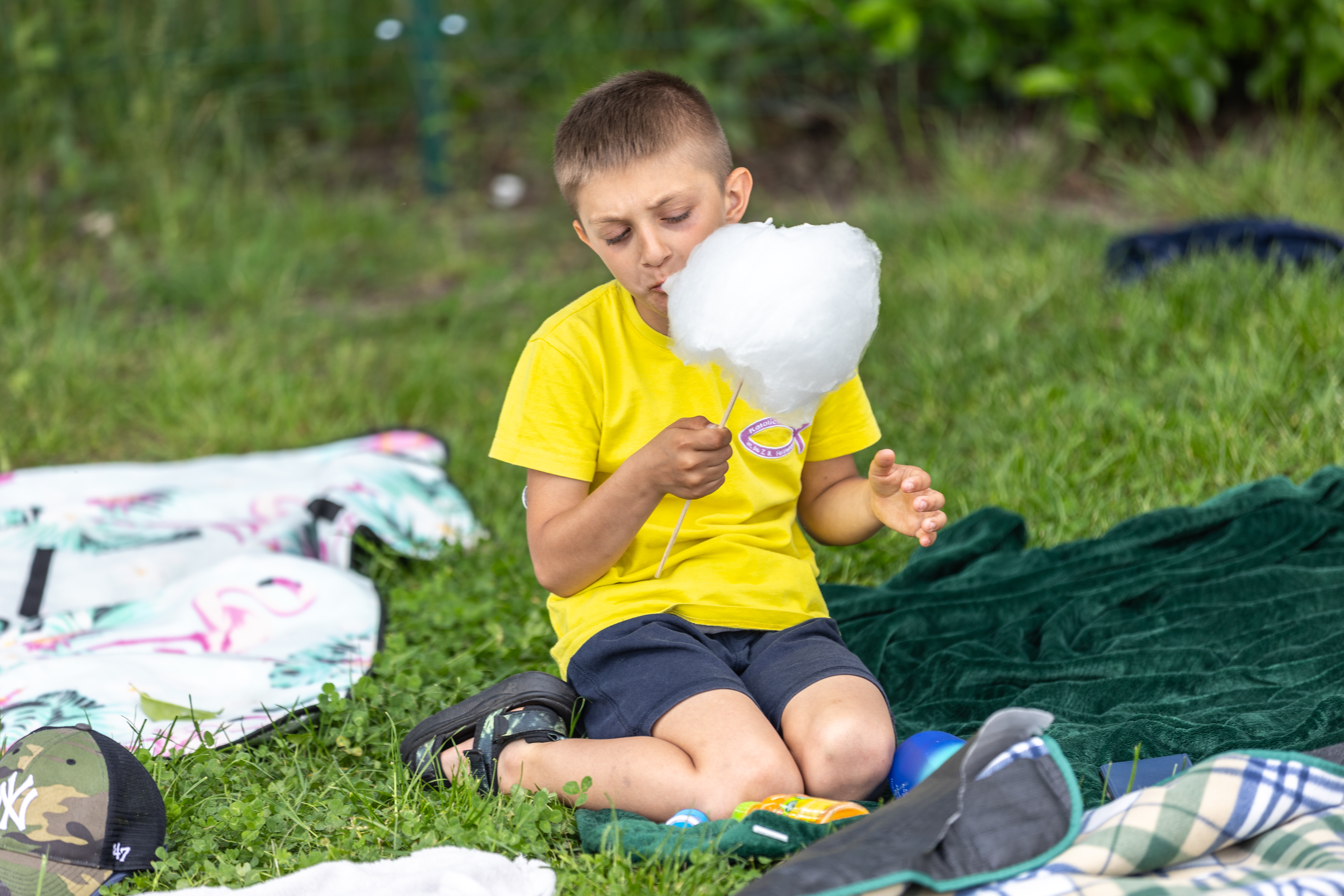 Dzieci bawiły się wyśmienicie, a gdy zmęczyły się zabawą mogły odpocząć na kocu, napić się lemoniady, która cieszyła się ogromnym powodzeniem, podobnie jak wata cukrowa.
