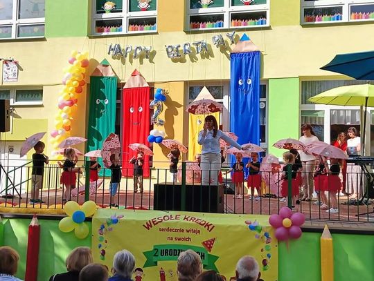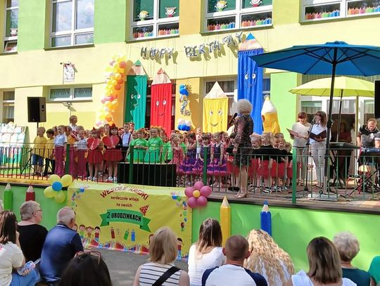 Jak na urodziny przystało były życzenia oraz tort. Poza tradycyjnym „Sto lat” odśpiewano również hymn placówki. Przedszkolakom, ich rodzicom oraz gronu pedagogicznemu w trakcie piątkowej uroczystości towarzyszyła maskotka PP nr 5 – Wesoła Kredka.