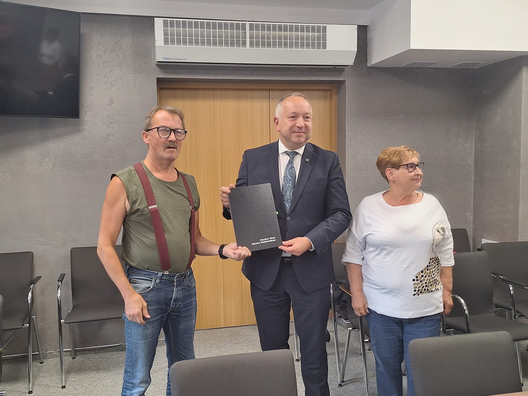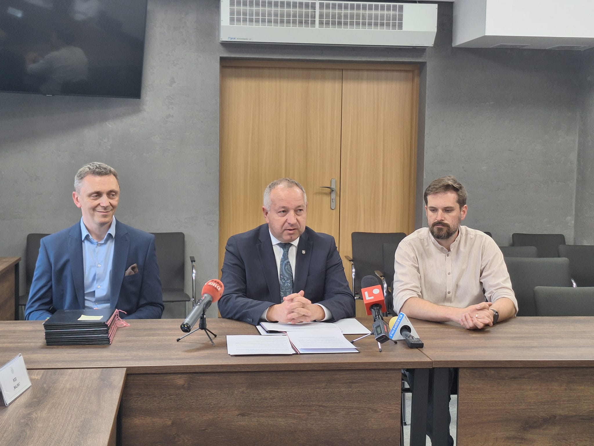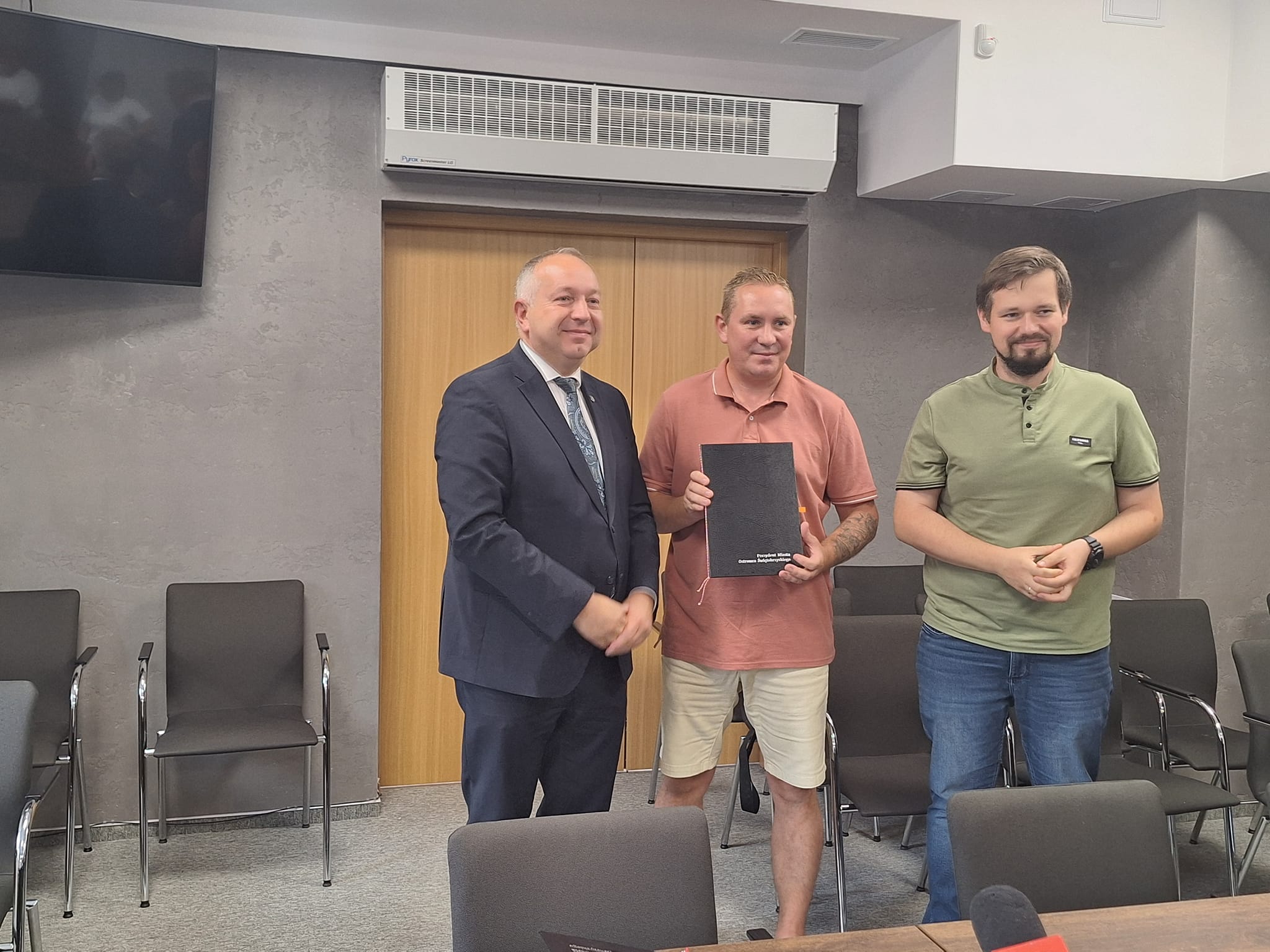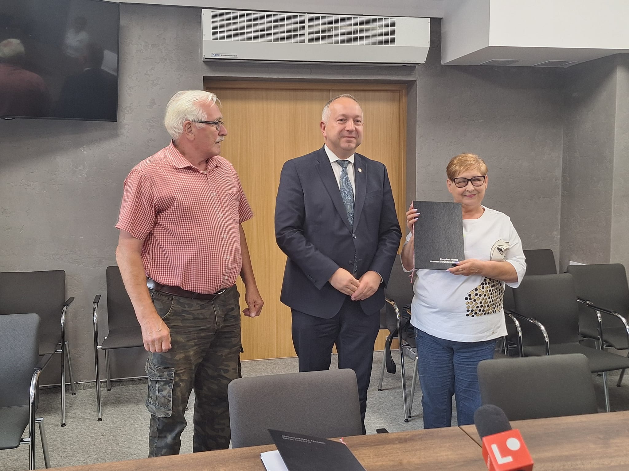 Konferencja prasowa dotycząca wspierania inicjatyw mających na celu ochronę środowiska oraz poprawę jakości życia mieszkańców Ostrowca Świętokrzyskiego została zorganizowana w urzędzie miasta w Ostrowcu Świętokrzyskim. Podczas konferencji zostały wręczone podpisane wnioski na udzielenie dotacji celowej z budżetu Gminy Ostrowiec Świętokrzyski z przeznaczeniem na przedsięwzięcie służące tworzeniu warunków do rozwoju stowarzyszeń ogrodowych prowadzących na terenie Ostrowca Świętokrzyskiego "Rodzinne Ogrody Działkowe"