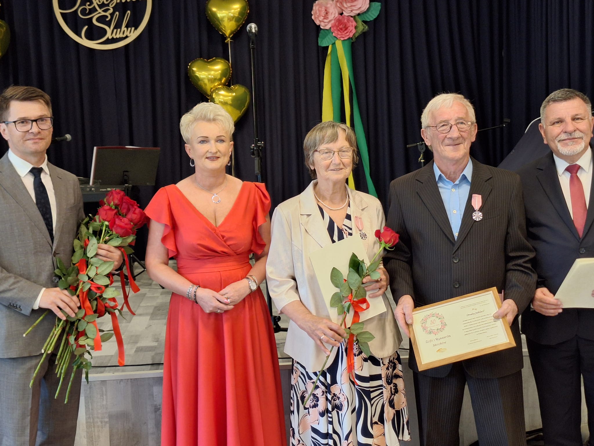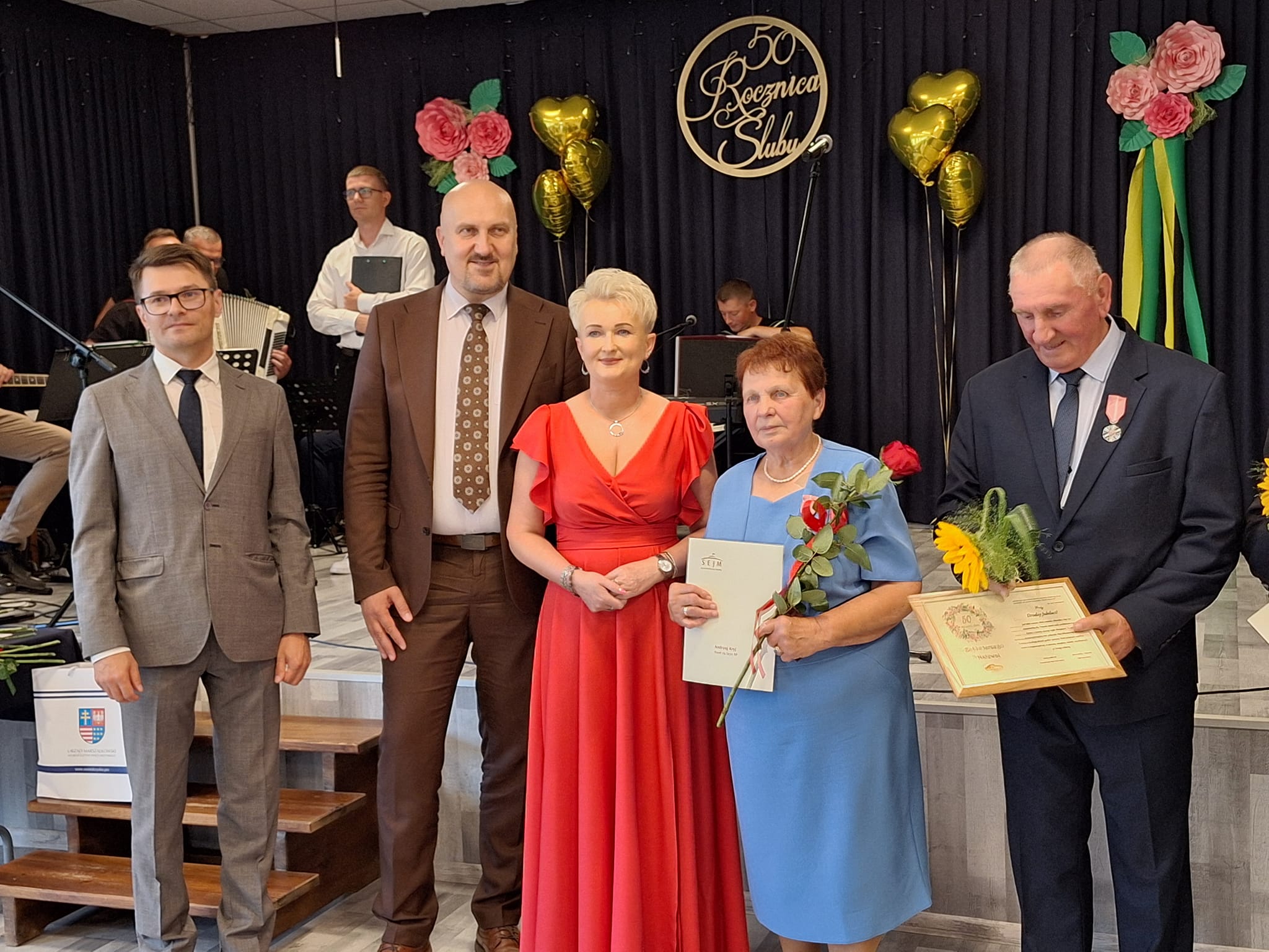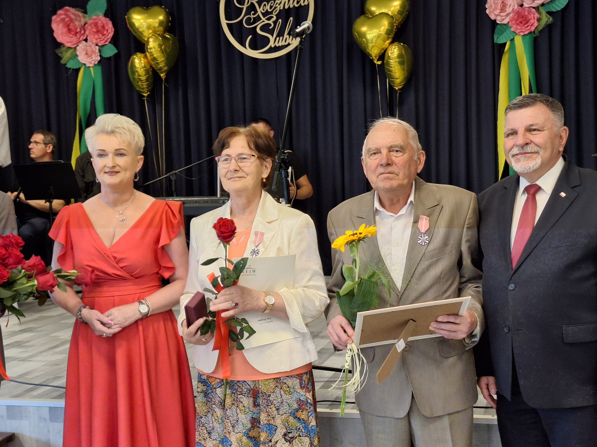W uroczystości wzięli udział poseł Andrzej Kryj i wicemarszałek województwa świętokrzyskiego Grzegorz Socha, którzy przekazali małżonkom listy gratulacyjne.