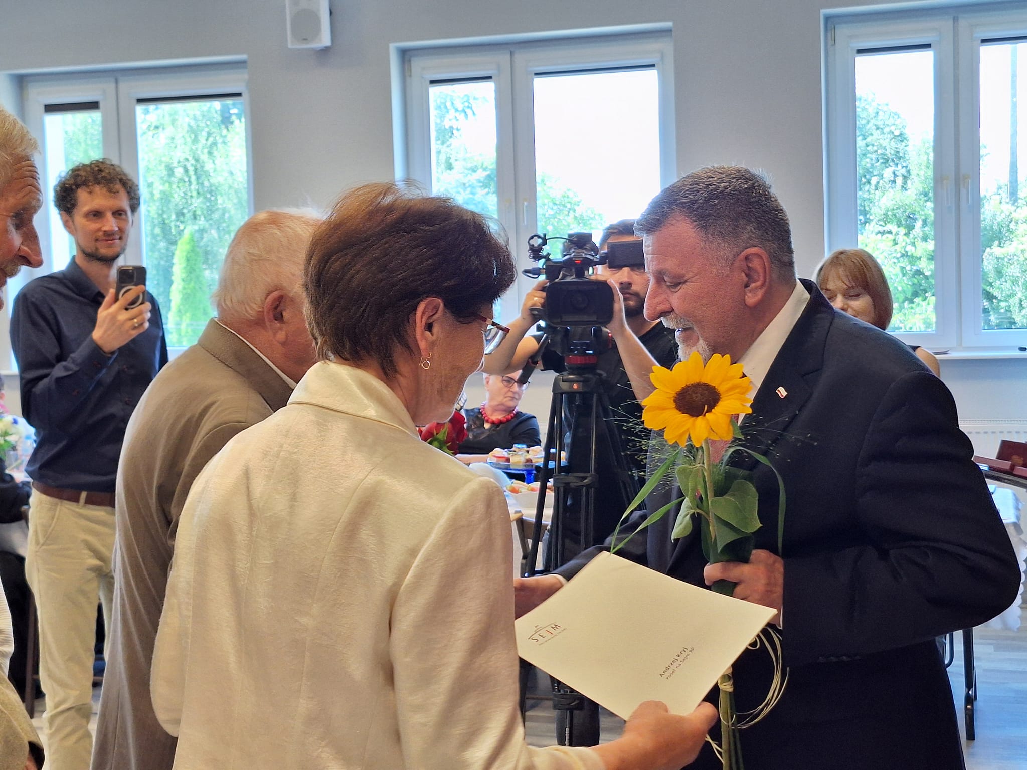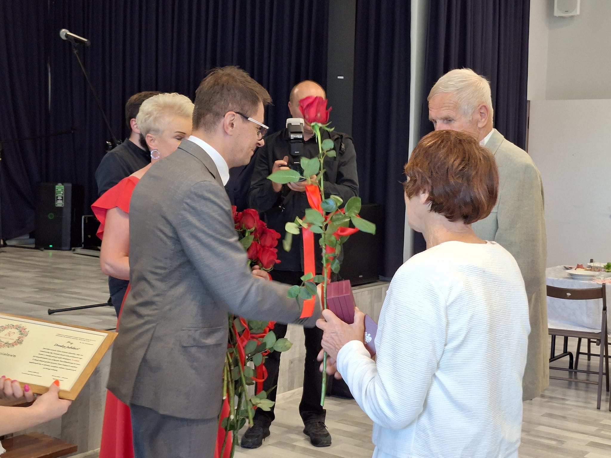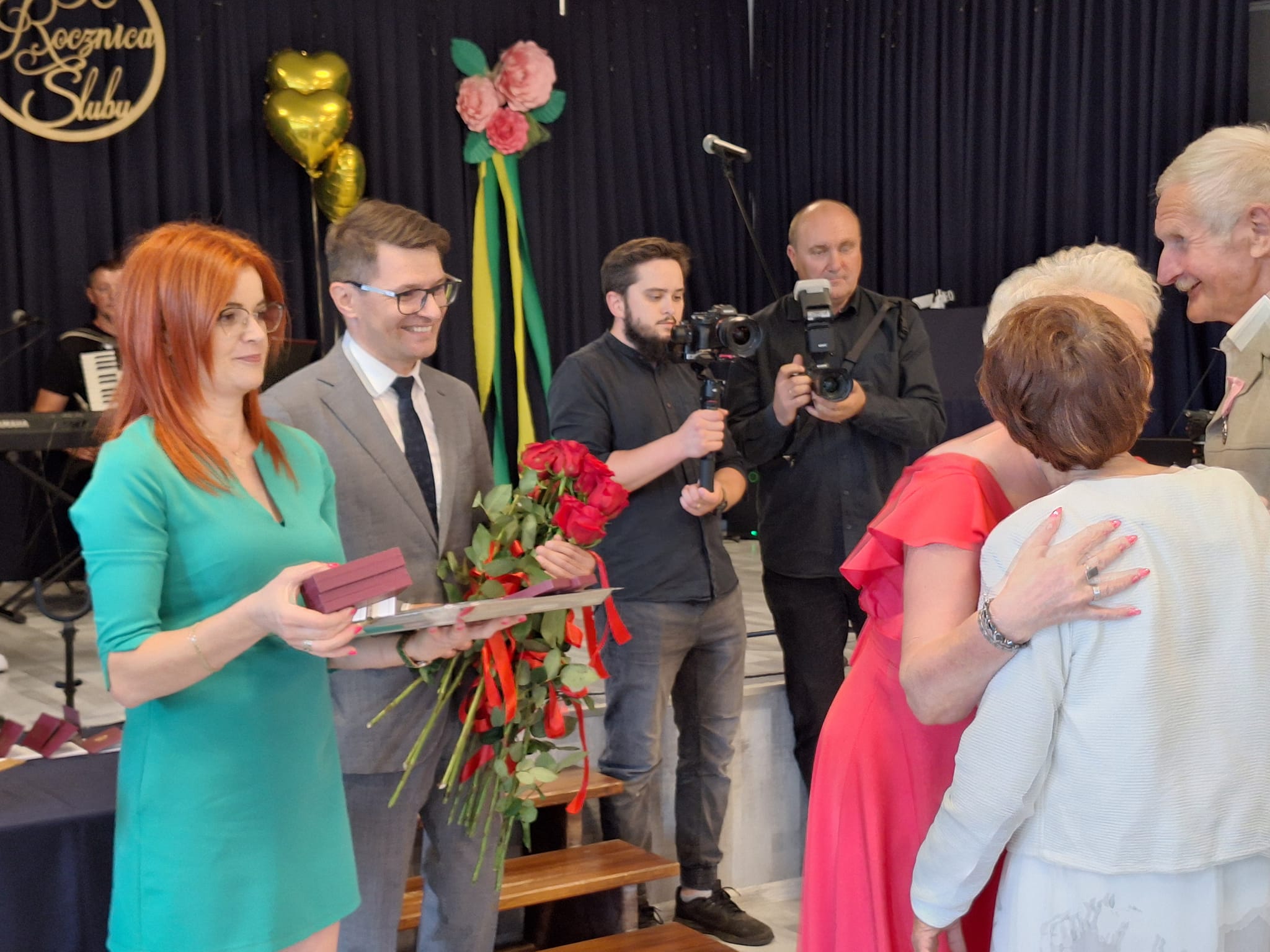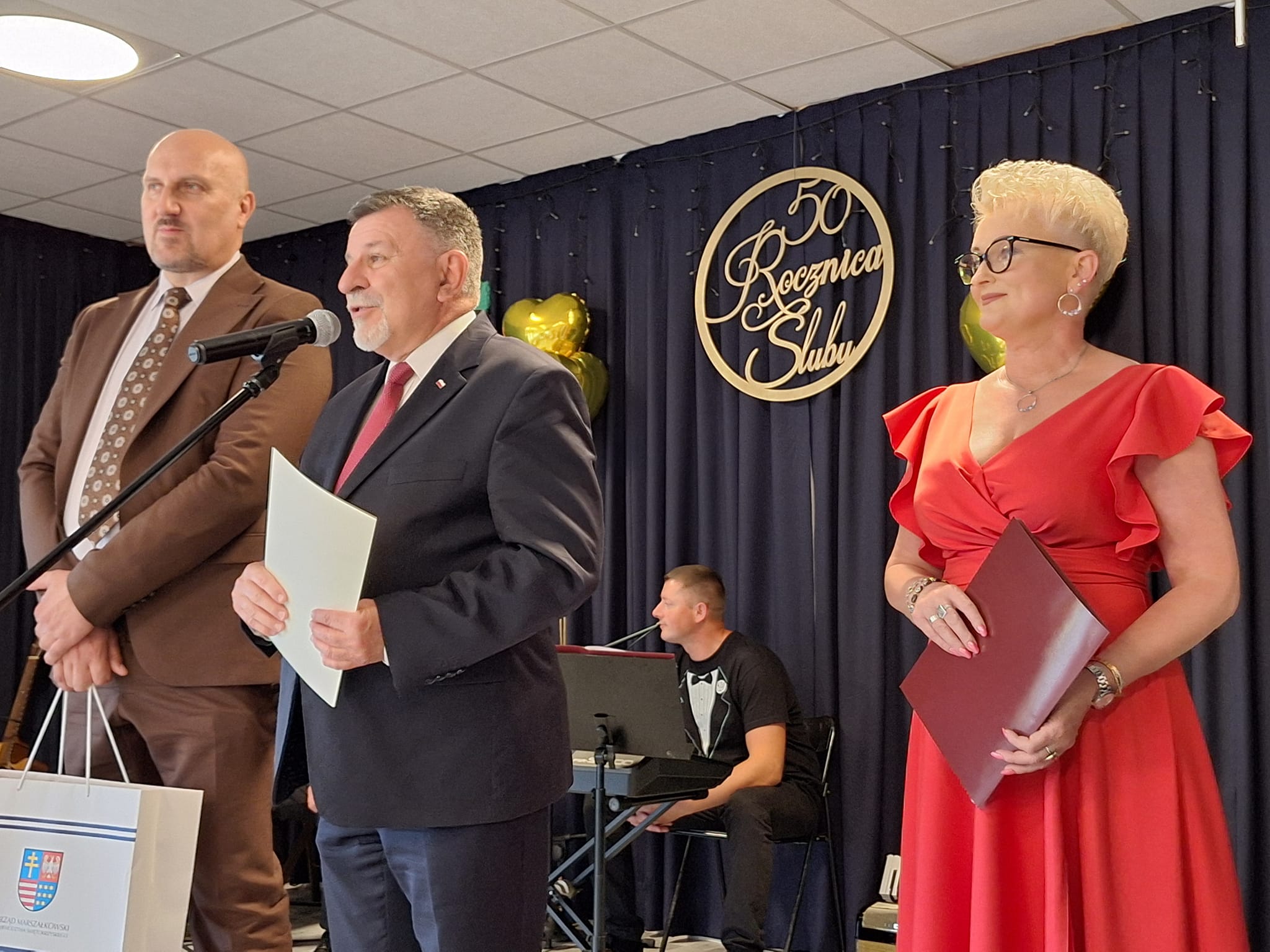 W uroczystości wzięli udział poseł Andrzej Kryj i wicemarszałek województwa świętokrzyskiego Grzegorz Socha, którzy przekazali małżonkom listy gratulacyjne.