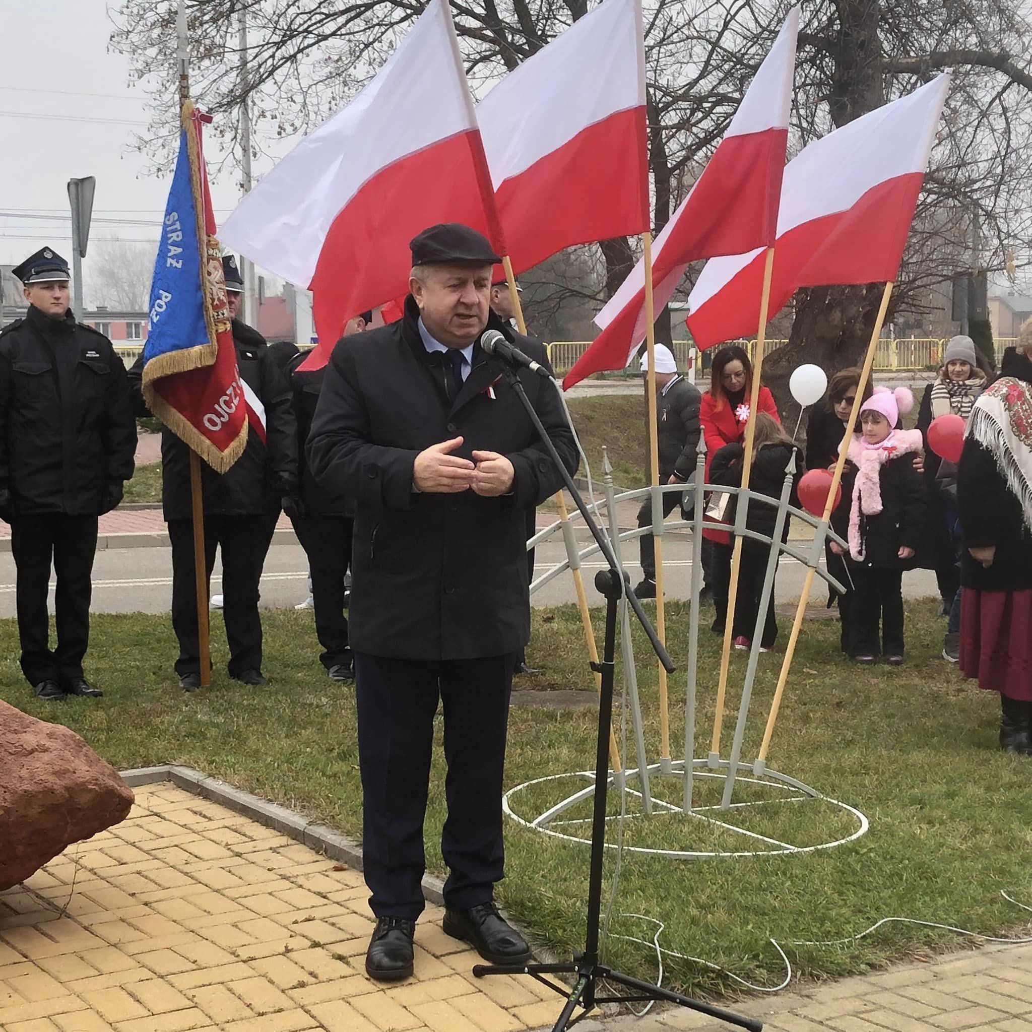 Po nabożeństwie uczestnicy świątecznego spotkania przeszli przed obelisk Bohaterów Powstania Styczniowego. Tam złożono kwiaty i zapalono znicze.