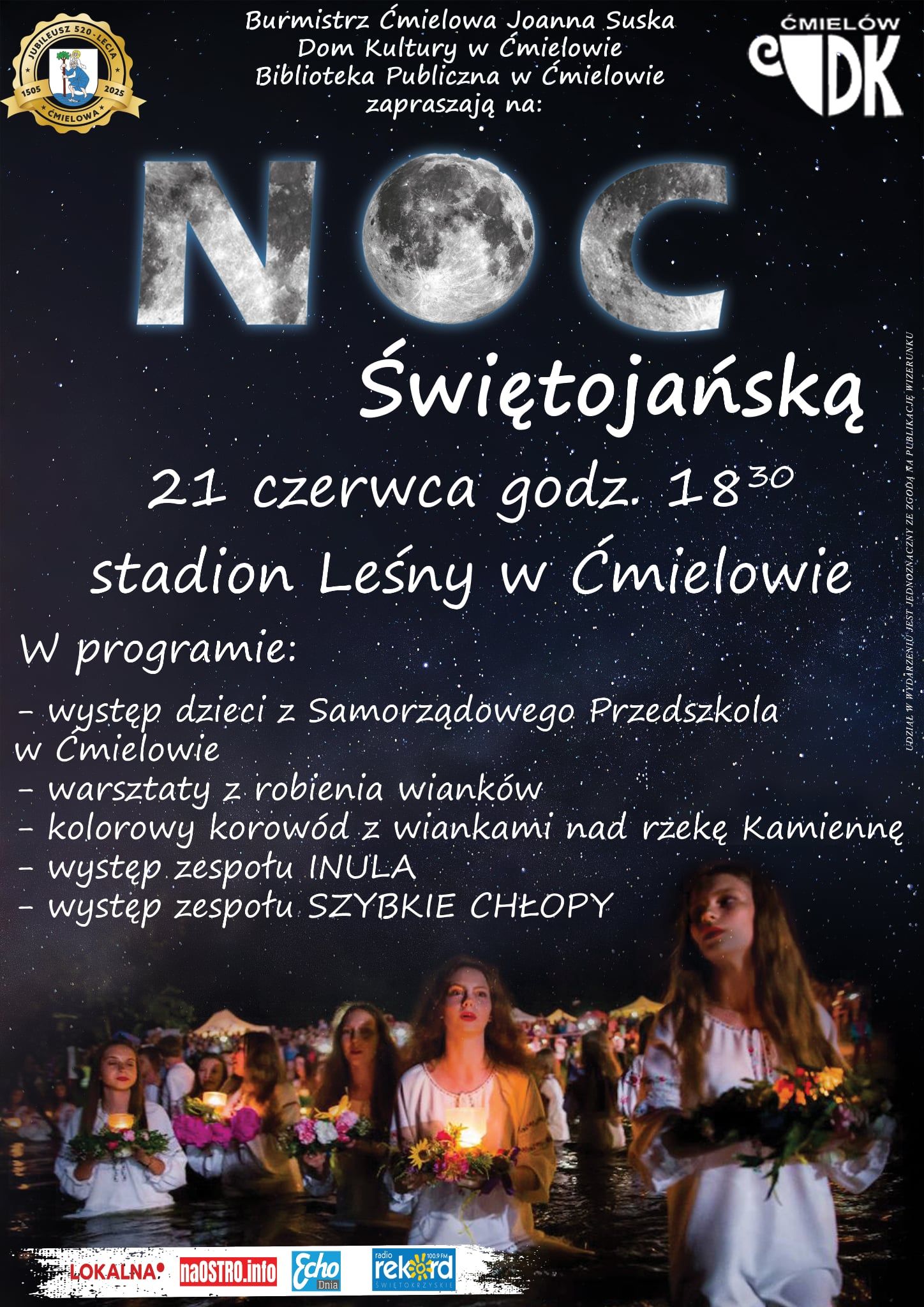 21 czerwca o godzinie 18:30 nie może Państwa zabraknąć na Nocy Świętojańskiej w Ćmielowie. Warsztaty z robienia wianków, występy artystyczne, koncert zespołu Inula i Szybkich Chłopów m.in. te atrakcje będą czekać na tych z Państwa, którzy odwiedzą stadion Leśny w Ćmielowie.