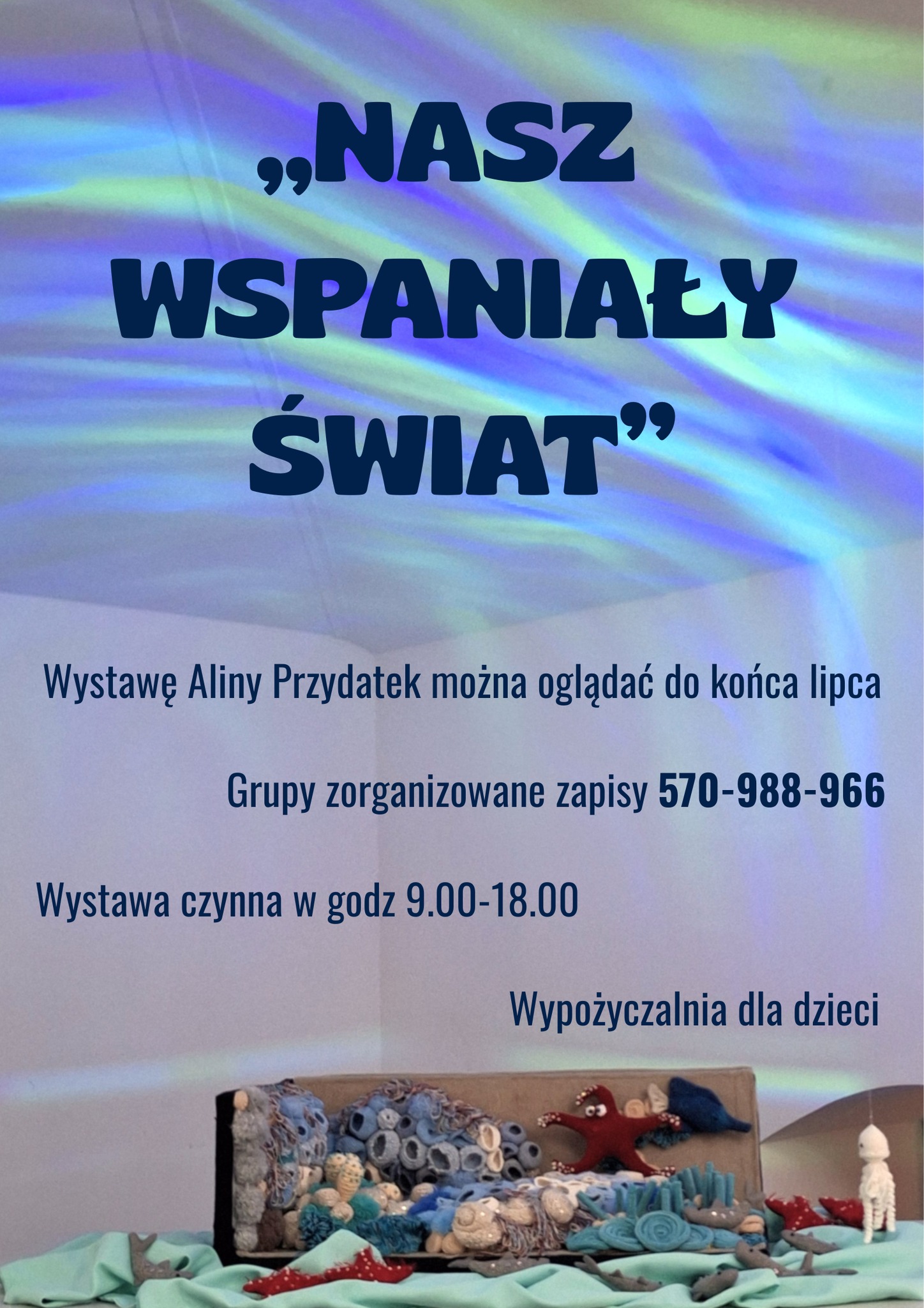 "Nasz wspaniały świat" to tytuł wystawy Pani Aliny Przydatek, która gości w Miejskiej Bibliotece Publicznej i jest dostępna dla zwiedzających w godzinach od 9:00 do 18:00 do końca lipca br. Grupy zorganizowane proszone są o wcześniejsze zapisy pod dedykowanym numerem telefonu.