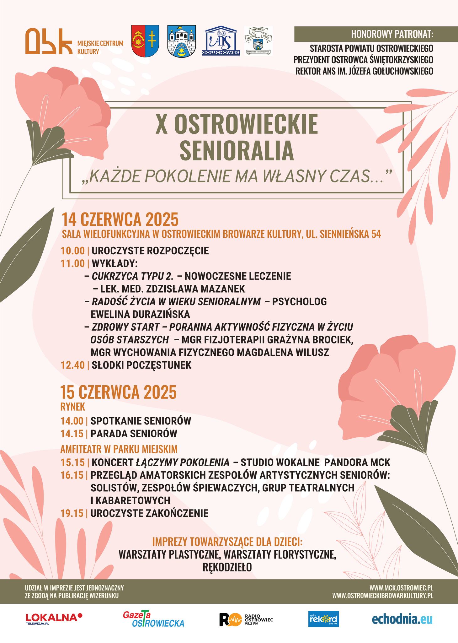 W Ostrowcu Świętokrzyskim seniorzy są bardzo aktywni co pokazali nie raz, chętnie uczestniczą w różnego rodzaju wydarzeniach a teraz zapraszają do wspólnego świętowania podczas X Ostrowieckich Senioraliów, które potrwają aż dwa dni. 14 czerwca w sali wielofunkcyjnej Ostrowieckiego Browaru Kultury, o godzinie 10:00 odbędzie się oficjalne otwarcie senioraliów, a od godziny 11:00 zaplanowano ciekawe prelekcje. 15 czerwca od godziny 14:00 seniorzy spotykają się na Rynku i zapraszają do wspólnej parady. Część artystyczna X jubileuszowych Ostrowieckich Senioraliów odbędzie się w Parku Miejskim.