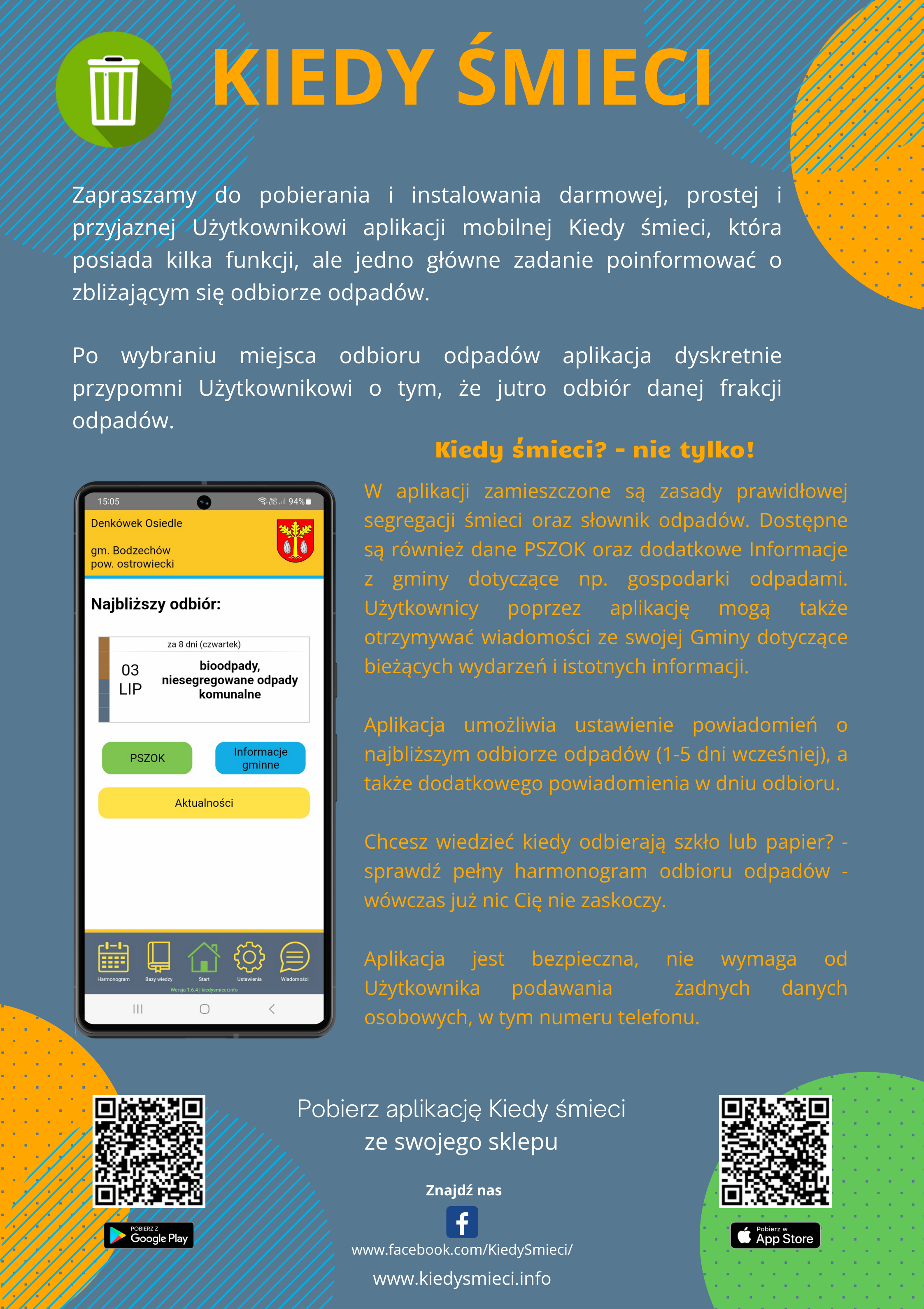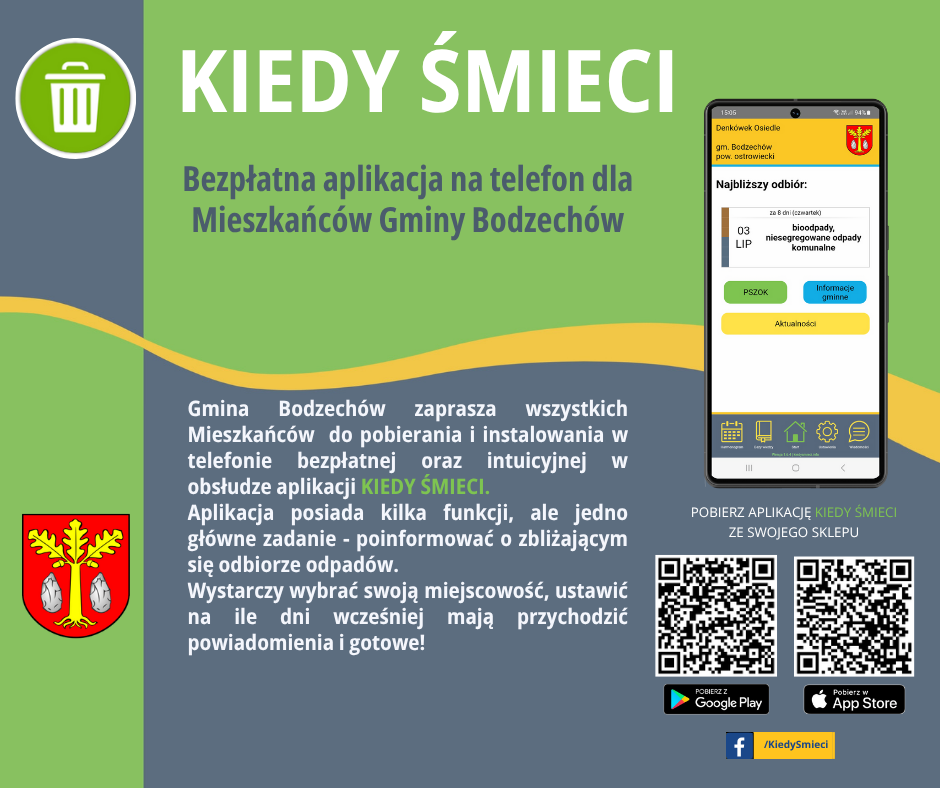 Aplikację można pobrać ze strony Urzędu Gminy Bodzechów i zainstalować na telefonie. Użytkownicy będą mogli sprawdzić termin odbioru poszczególnych rodzajów śmieci.