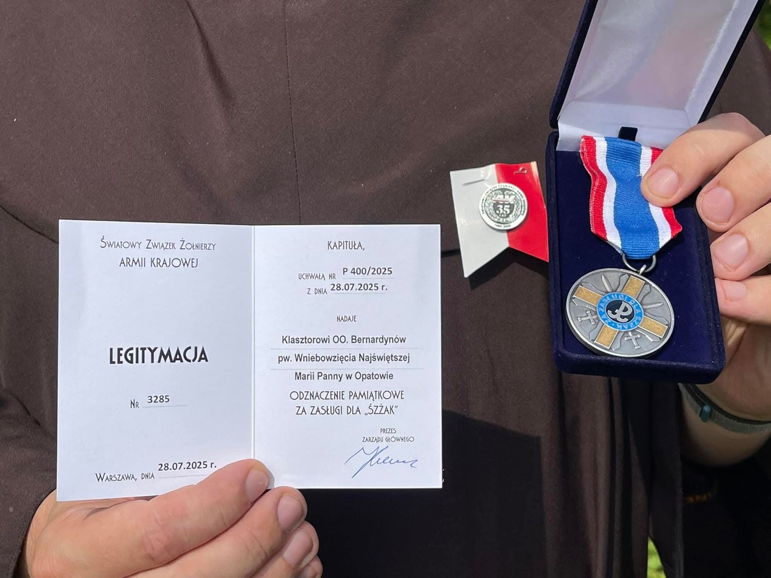W niedzielę, 10 sierpnia w Klasztorze OO. Bernardynów w Opatowie odbyła się podniosła uroczystość nadania Medalu za zasługi dla Światowego Związku Żołnierzy Armii Krajowej. W imieniu wspólnoty odznaczenie odebrał o. Anastazy Popiel, gwardian klasztoru.