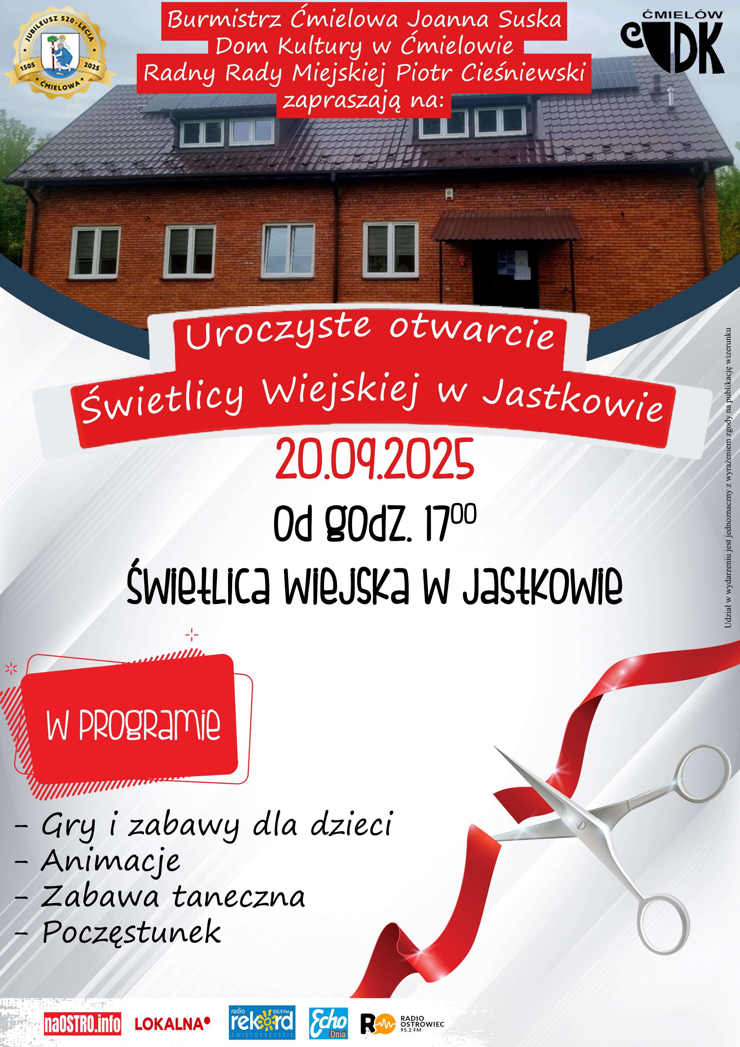 W niedzielę, 20 września 2025 roku, mieszkańcy Jastkowa oraz okolicznych miejscowości będą mieli okazję wziąć udział w otwarciu nowej świetlicy wiejskiej. Inwestycja, realizowana przez Gminę Ćmielów z inicjatywy burmistrz Joanny Suskiej oraz radnego Piotra Cieśniewskiego, ma na celu stworzenie nowego miejsca spotkań i integracji lokalnej społeczności. Uroczystość rozpocznie się o godzinie 17:00 i przewiduje wiele atrakcji zarówno dla dzieci, jak i dorosłych.