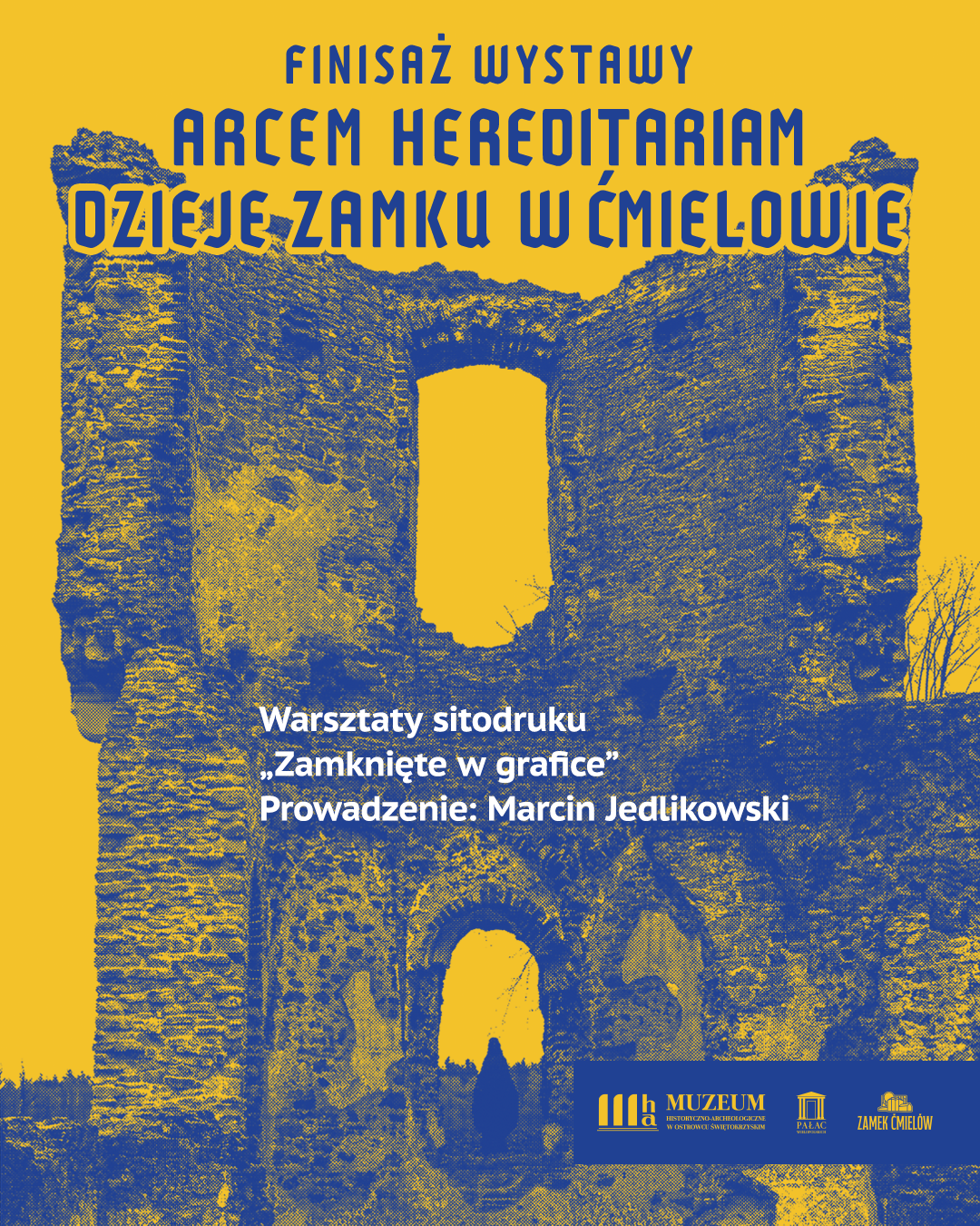 W dniu finisażu wystawy „Arcem hereditariam. Dzieje zamku w Ćmielowie” zostaną zorganizowane warsztaty sitodruku, a poprowadzi je Marcin Jedlikowski - artysta wizualny pochodzący z Ostrowca Świętokrzyskiego. Podczas akcji „sita na żywo” będzie można samodzielnie odbić wzory nawiązujące do tematyki wystawy – na koszulce lub innym materiale.