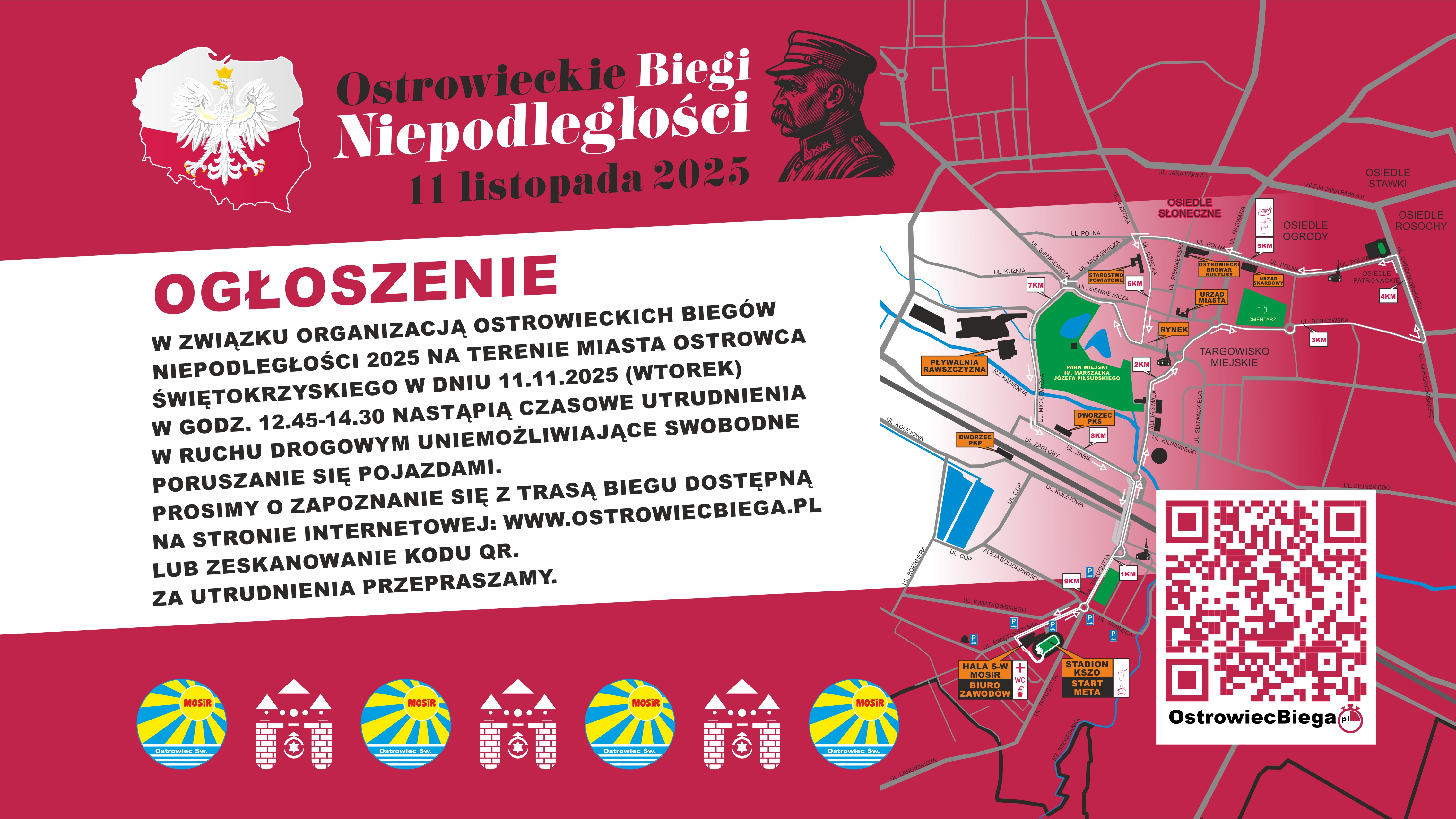 Przypominamy, że opłata w dniu 01.10.25 wzrosła (60 zł) i obowiązuje do 06.11.25 (decyduje data zaksięgowania na rachunku organizatora). W dniu imprezy (11.11.25), o ile będą jeszcze miejsca w wyznaczonym limicie, stawka za opłatę startową wynosić będzie 100 zł.