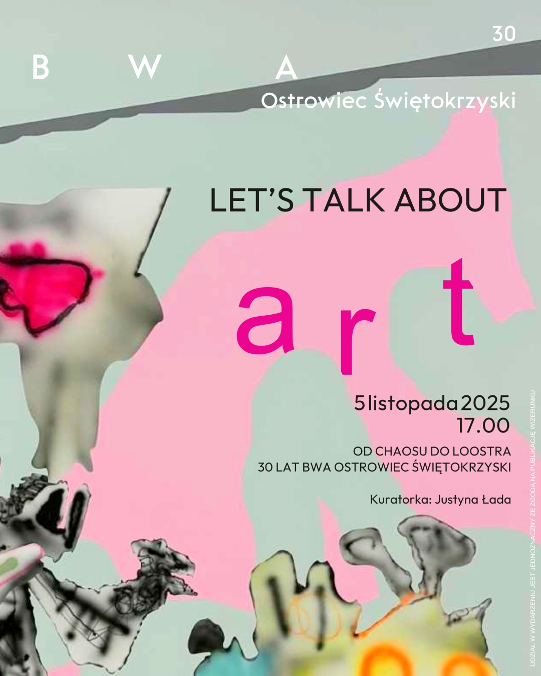 „Let's talk about art" to propozycja adresowana do szerokiego grona odbiorców — od osób uczących się języka angielskiego, które chcą rozwijać kompetencje komunikacyjne w kontekście kultury, po miłośników sztuki zainteresowanych pogłębioną refleksją nad prezentowanymi pracami. Spotkanie stwarza okazję do połączenia nauki języka z bezpośrednim kontaktem ze sztuką i inspirującą rozmową w twórczej atmosferze galerii.