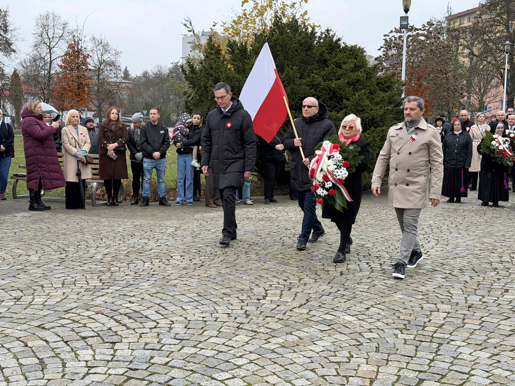 Uroczystości rozpoczęły się od złożenia wiązanek przy Maszcie Niepodległości w Parku Miejskim. Następnie uczestnicy przeszli do kolegiaty p.w. św. Michała Archanioła, gdzie odprawiono uroczystą Mszę Świętą w intencji Ojczyzny. Nabożeństwo miało charakter refleksyjny i podniosły, a zgromadzeni modlili się za tych, którzy walczyli i poświęcili życie dla niepodległej Polski.
