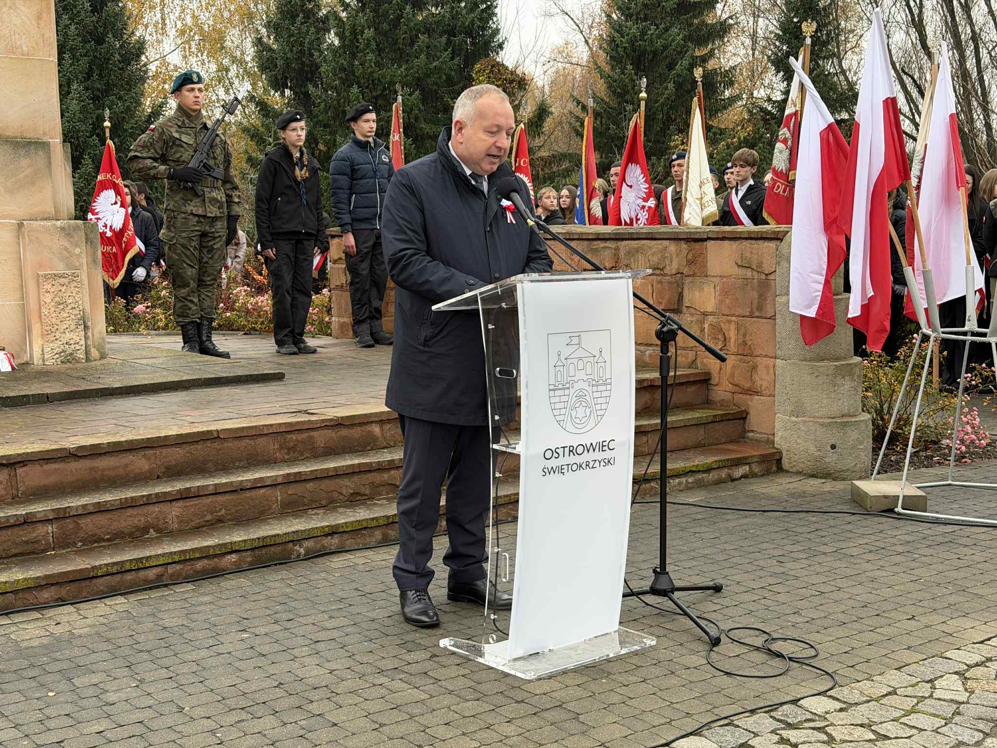 11-go listopada w Ostrowcu Świętokrzyskim odbyły się uroczyste obchody Narodowego Święta Niepodległości, które zgromadziły przedstawicieli władz wojewódzkich i samorządowych, służb mundurowych, organizacji społecznych, harcerzy, pocztów sztandarowych, uczniów oraz mieszkańców.