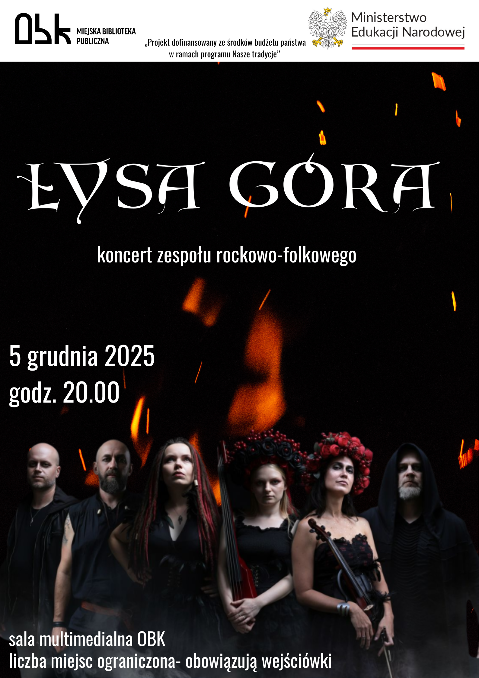 Miejska Biblioteka Publiczna w ramach projektu „Jestem stąd – Jesienna Szkoła Folkloru Językowego” organizuje koncert folkowo-rockowego zespołu ‘Łysa Góra”.