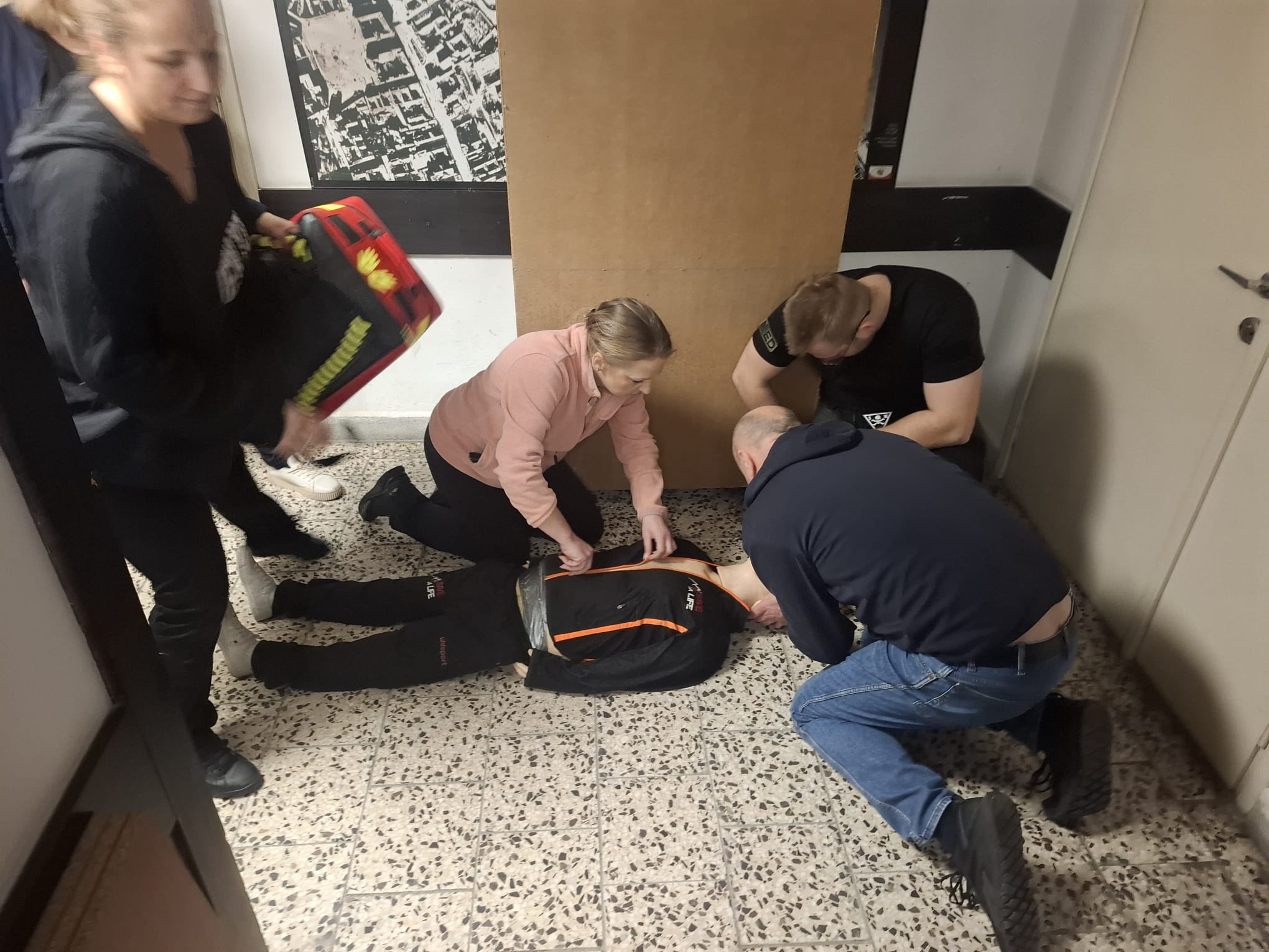 Zajęcia zostały przeprowadzone w ramach kursu Kwalifikowanej Pierwszej Pomocy. W ich trakcie uczestnicy poznawali zasady postępowania w sytuacjach zagrożenia zdrowia i życia oraz zdobywali praktyczne umiejętności niezbędne do skutecznej interwencji. Ćwiczenia obejmowały zarówno udzielanie pomocy medycznej — od oceny stanu poszkodowanego po opanowanie krwotoków i podstawowe zabiegi resuscytacyjne — jak i działania organizacyjne niezbędne przy ratowaniu osób poszkodowanych. Istotnym elementem szkolenia były scenariusze ewakuacyjne.