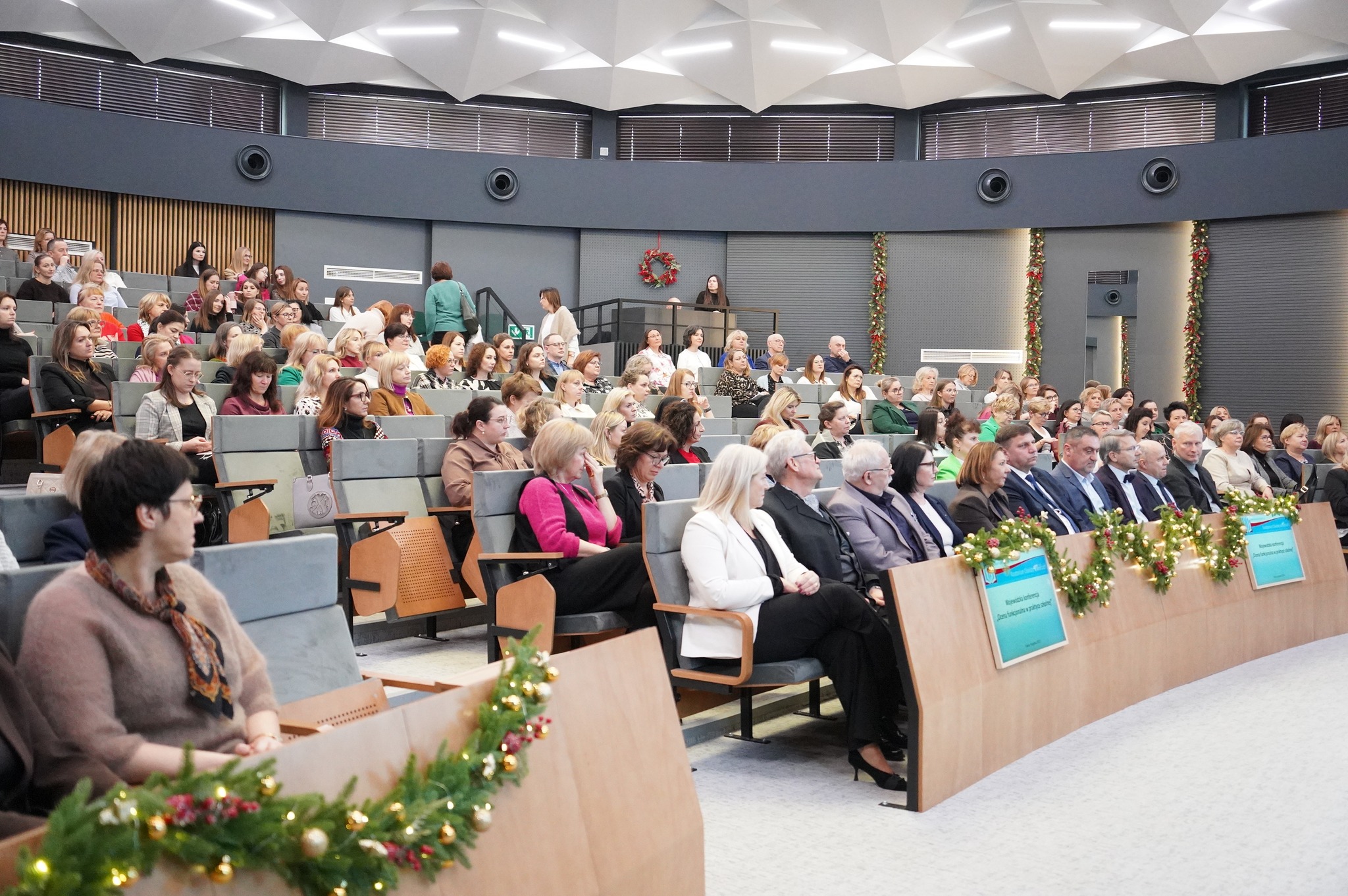 Poruszano także zagadnienia dotyczące ochrony danych i etycznych zasad prowadzenia rozpoznania ucznia, aby stosowane procedury były rzetelne i respektowały prawa dziecka. W rozmowach pojawiał się wątek integracji podejścia funkcyjnego z obowiązującymi strukturami wsparcia — tak by wyniki oceny mogły być szybko przekuwane na konkretne interwencje: dostosowania programowe, zajęcia wyrównawcze, wsparcie psychologiczno–pedagogiczne czy współpracę z poradniami specjalistycznymi. Zwracano uwagę na konieczność jasnych procedur i narzędzi, które pomogą nauczycielom realizować te działania bez nadmiernego obciążenia administracyjnego. Konferencja posłużyła też jako przestrzeń wymiany dobrych praktyk między szkołami z różnych części regionu.