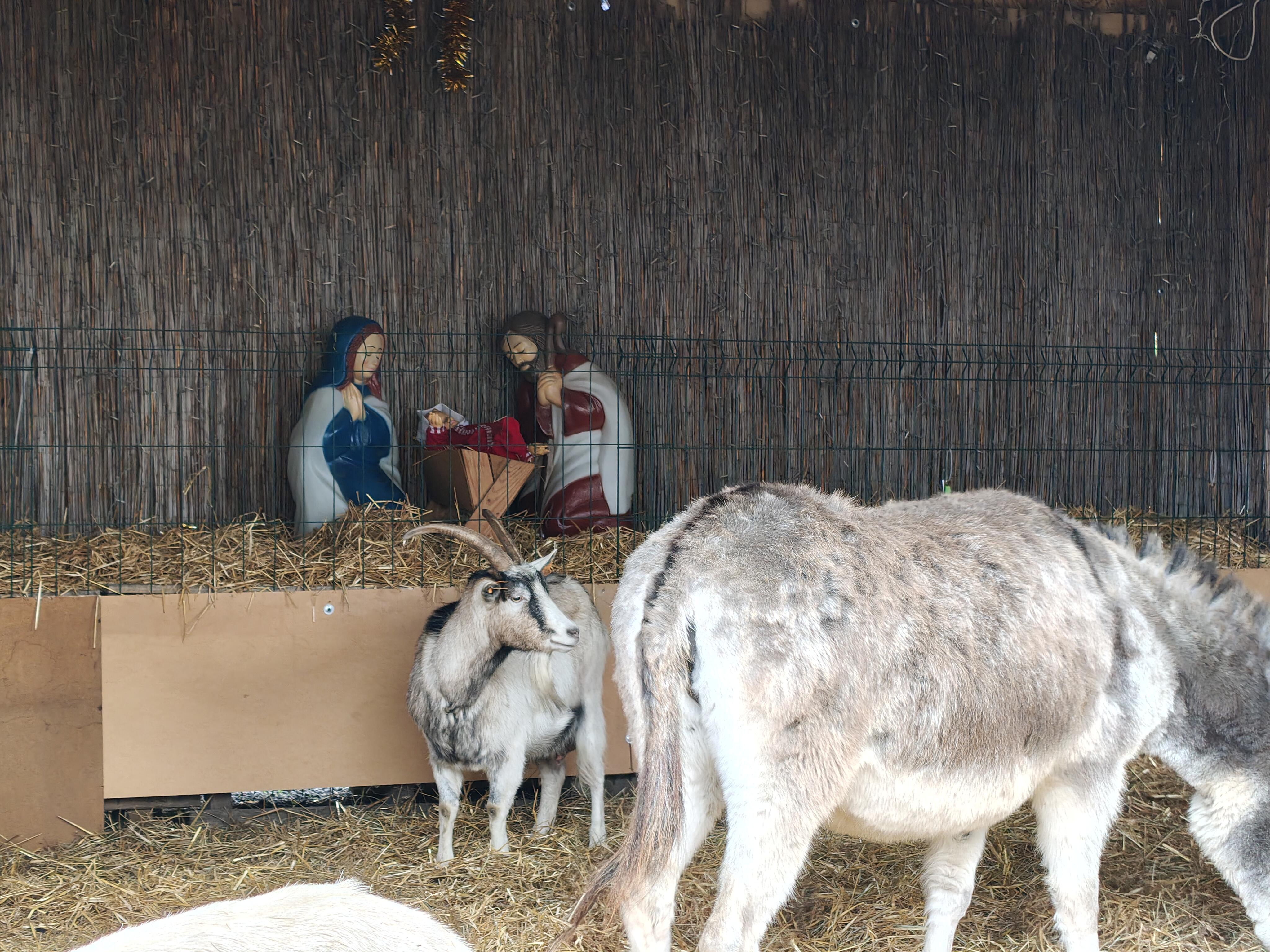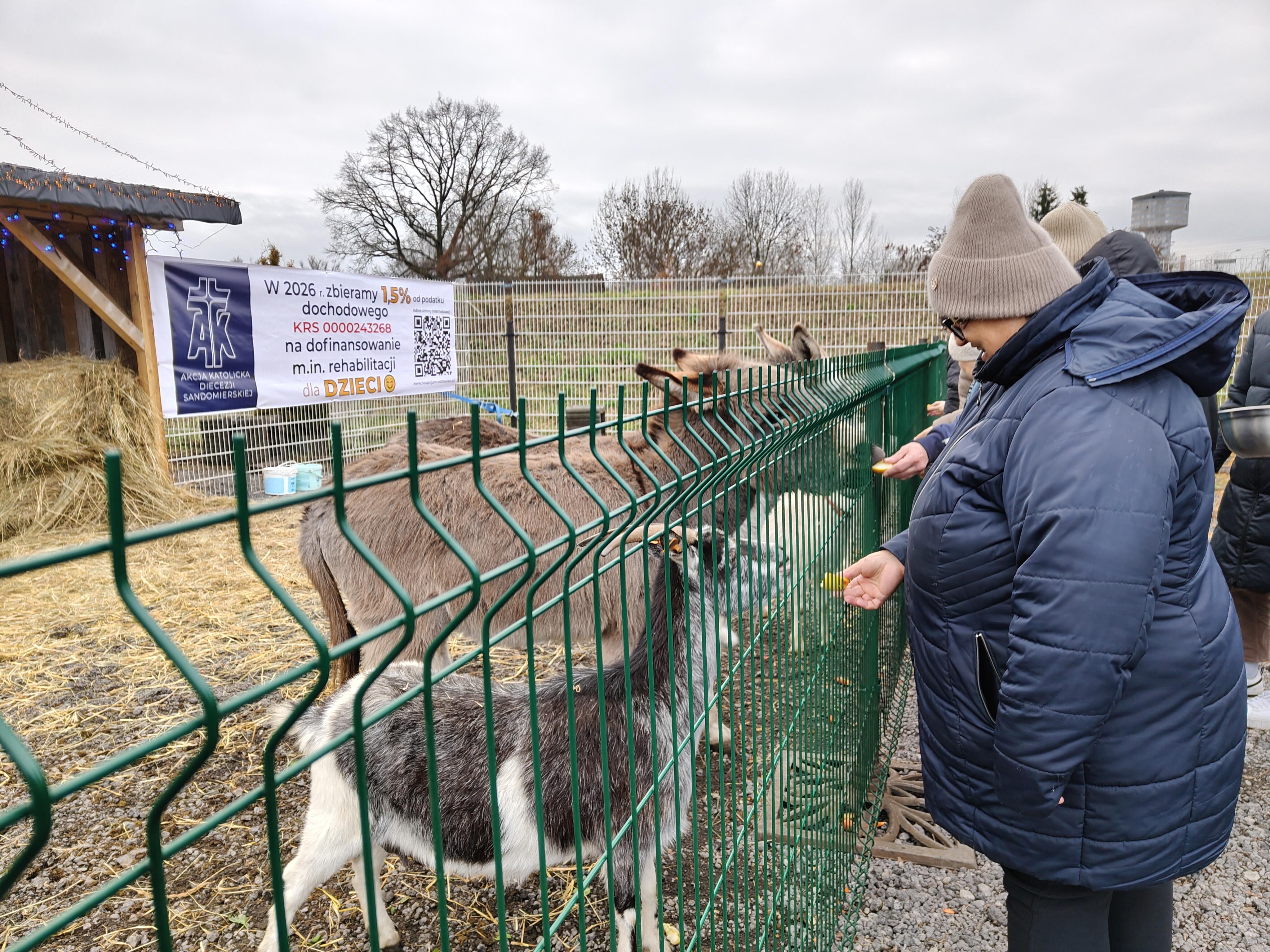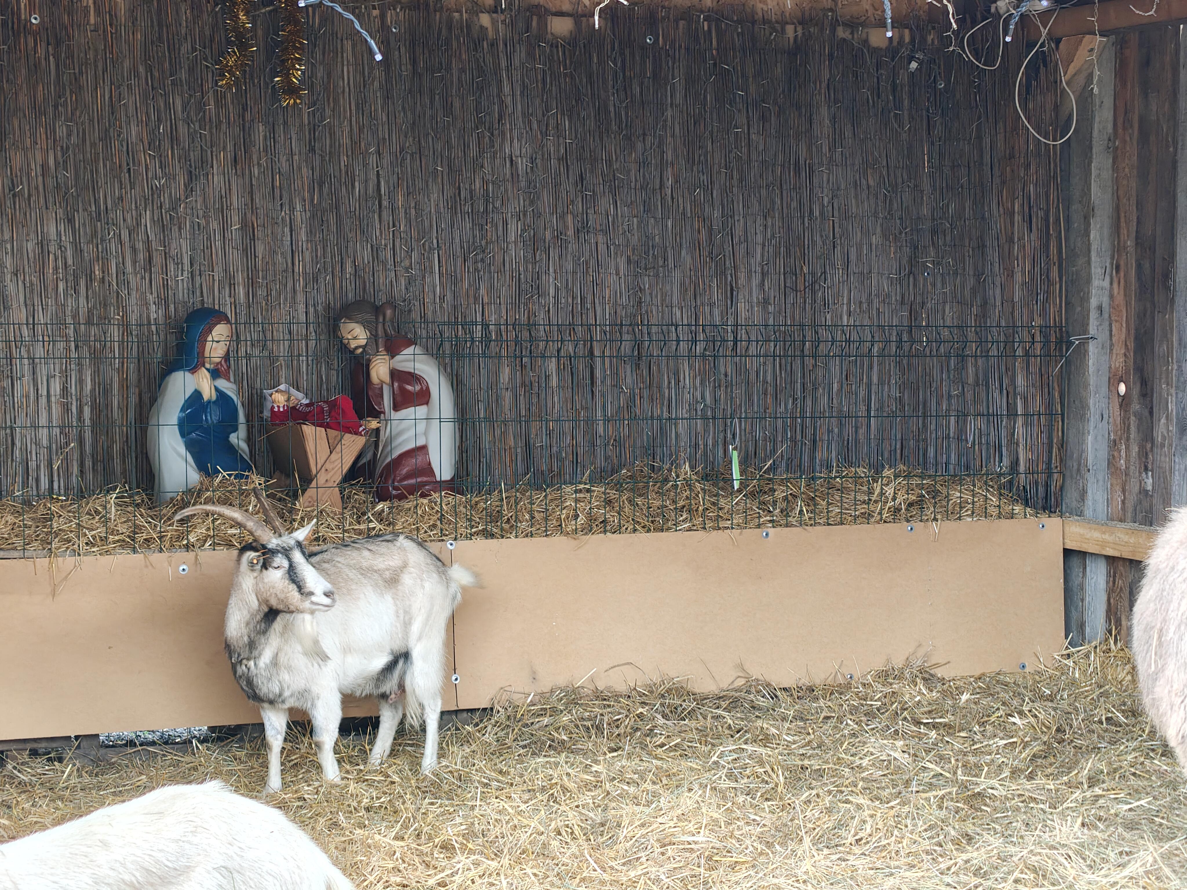 W wnętrzu można zobaczyć osiołki i kozy. O zwierzęta troszczą się pracownicy hospicjum; jednocześnie odwiedzających zachęca się do przynoszenia smakołyków, takich jak jabłka, marchewki czy sałata, by móc je nakarmić i w ten sposób bliżej poznać tradycję żywej szopki.