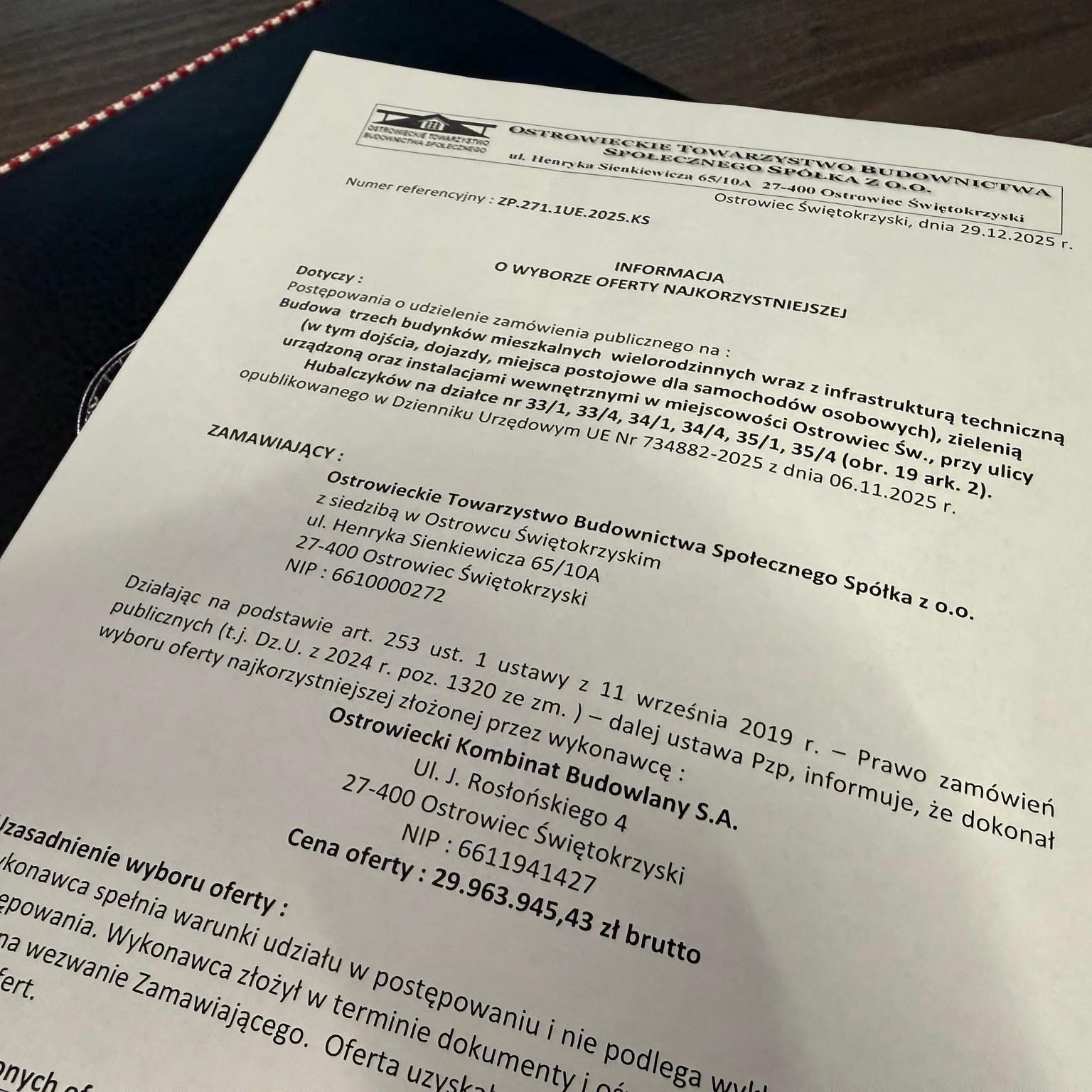 W przetargu na budowę trzech bloków mieszkalnych wpłynęło pięć ofert. Trzy z nich mieściły się w kwocie przeznaczonej przez gminę Ostrowiec na realizację j inwestycji o wartosci 32 mln 850 tys. złotych. Najniższą kwotę zaoferował Ostrowiecki Kombinat Budowlany. W ramach tego zadania mieszkania będą gotowe do zamieszkania, nie będzie to stan deweloperski. Na realizację inwestycji wykonawca ma 22 miesiące.