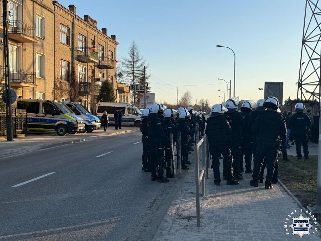 Funkcjonariusze pionów prewencji, ruchu drogowego oraz kryminalni byli obecni na trasach dojazdowych, w centrum miasta oraz oczywiście w okolicach stadionu. Niestety podczas rozgrywającego meczu doszło do złamania prawa. Pseudokibice rozwinęli flagę tzw. „sektorówkę” oraz odpalili race świetlne i stroboskopowe. Stróże prawa zatrzymali siedmiu mężczyzn w wieku od 19 do 45 lat, którzy odpowiedzą za złamanie przepisów ustawy o imprezach masowych. Ostrowieccy kryminalni ustalają tożsamość pozostałych osób, które dopuściły się tzw. „przestępstw stadionowych". Pseudokibice staną przed obliczem sądu i odpowiedzą za popełnione przestępstwa.