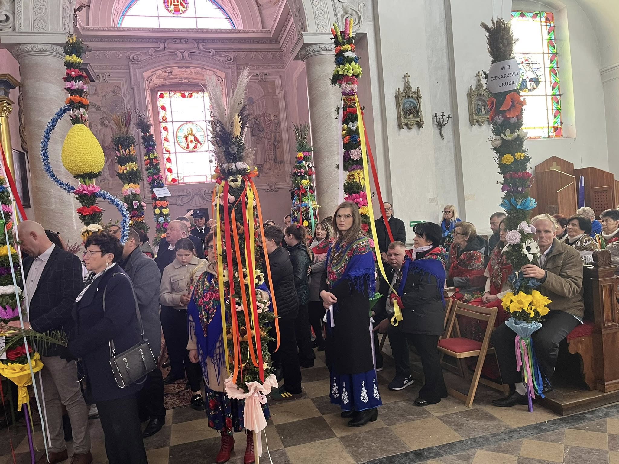 Niedziela Palmowa w Tarłowie to święto, które od lat łączy duchowe przeżycie z pokazem miejscowego rzemiosła i kreatywności. Mieszkańcy gromadzą się, by wspólnie przygotować i nieść palmy — symbole wiosny i wiary — które stają się centrum lokalnej uroczystości. Do wykonania palm używa się tradycyjnych materiałów: bibułowych kwiatów, kłosów zbóż, ziół i kolorowych wstążek. Często powstają konstrukcje misternie plecione i ozdabiane, nad którymi pracują całe rodziny, Koła Gospodyń Wiejskich oraz sołectwa. Efekt jest imponujący — niektóre palmy osiągają nawet kilka metrów wysokości i wzbudzają podziw.