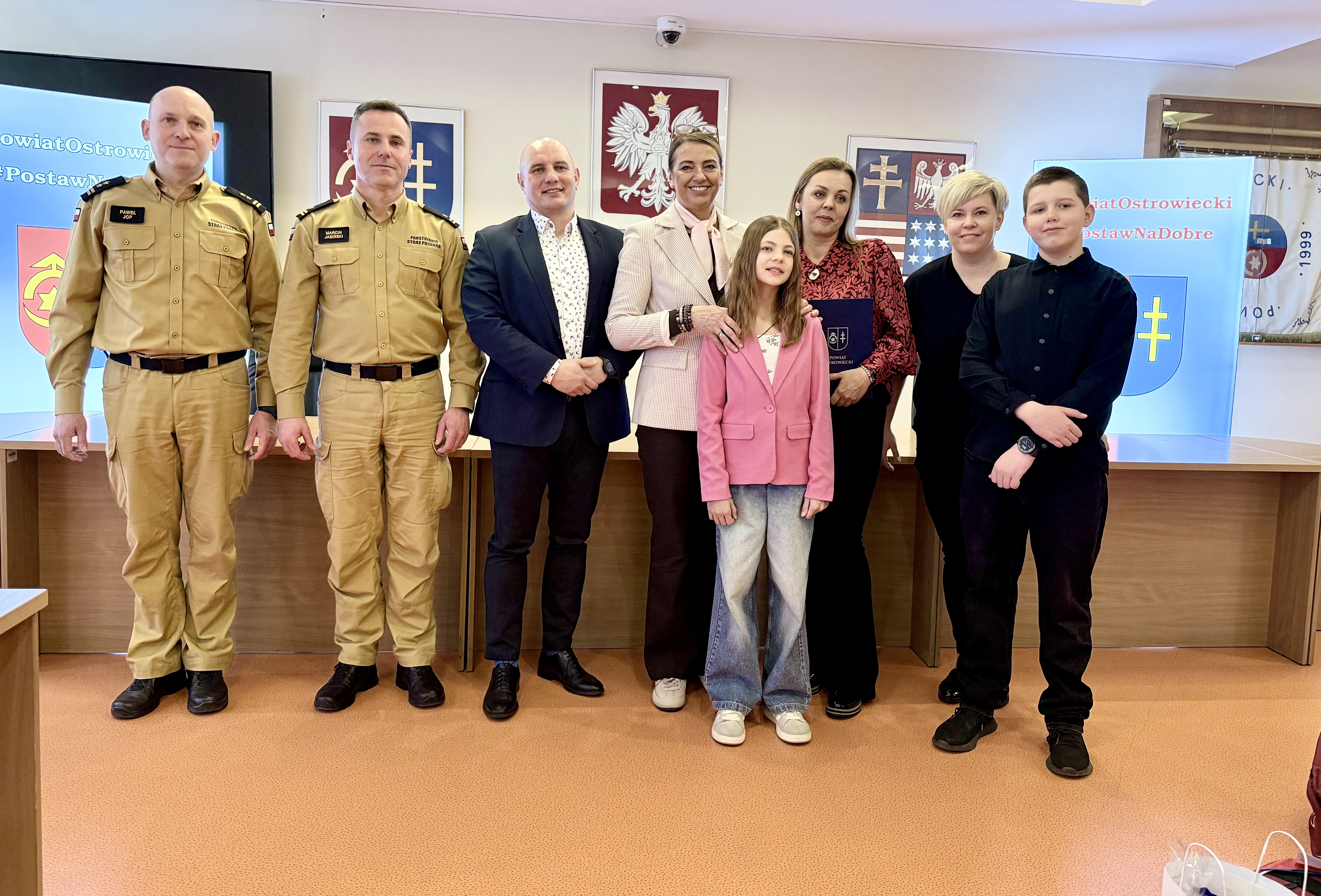 Wyrazy uznania przekazali im: starosta ostrowiecki Agnieszka Rogalińska, wicestarosta Łukasz Dybiec, mł. bryg. Marcin Jasiński oraz bryg. Paweł Jop.