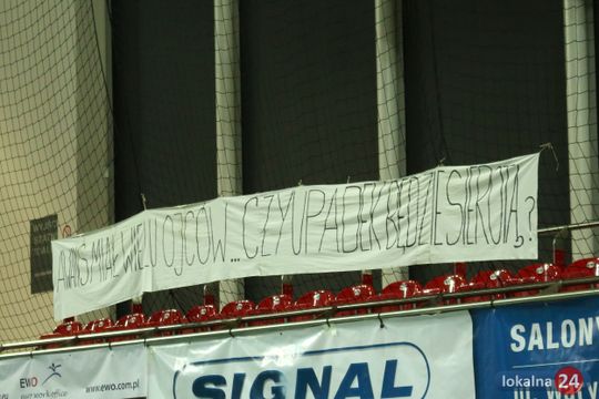 Cieszyć może jedynie fakt niesłabnącego zainteresowania siatkówką w Ostrowcu Świętokrzyskim. Kibice pozostają wierni i dopingują konsekwentnie, mając świadomość, że sytuacji w klubie jest trudna. Najlepiej obrazuje ją transparent jaki zawisł podczas dzisiejszego meczu. "Awans miał wielu ojców...Czy porażka będzie sierotą?" pytają autorzy.