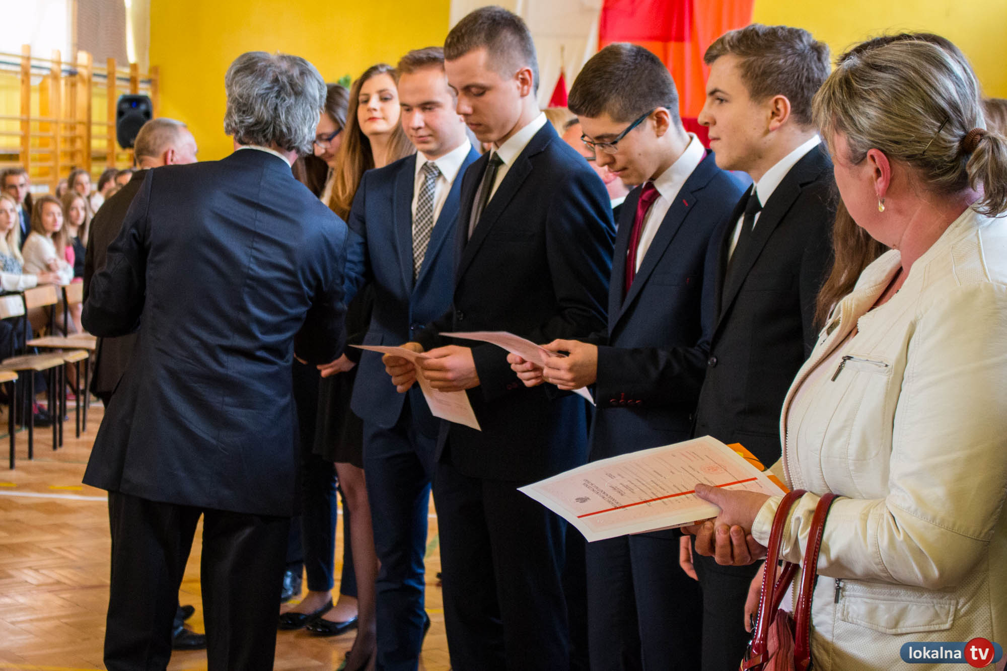 Dyrektor szkoły, Sławomir Miszczuk, w obecności grona pedagogicznego i licznie przybyłych na uroczystość rodziców, z wielką radością gratulował młodzieży znakomitych ocen na świadectwie oraz imponujących osiągnięć w różnych olimpiadach i konkursach przedmiotowych, życząc równie wspaniałych wyników z egzaminów maturalnych. Dyrektor szkoły wręczył osobiście świadectwa ze zwanym popularnie czerwonym paskiem wyróżnionym absolwentom - a było ich aż 64, zaś na ręce ich Rodziców złożył gratulacyjne listy. Podziękował również wszystkim Rodzicom, którzy zaangażowani byli w pracę na rzecz szkoły. Wśród prymusów „Chreptowicza” aż 45 osób uzyskało średnią ocen 5,0 i powyżej 5,0.