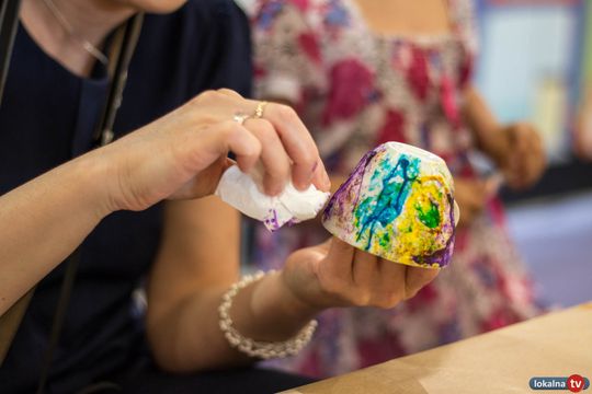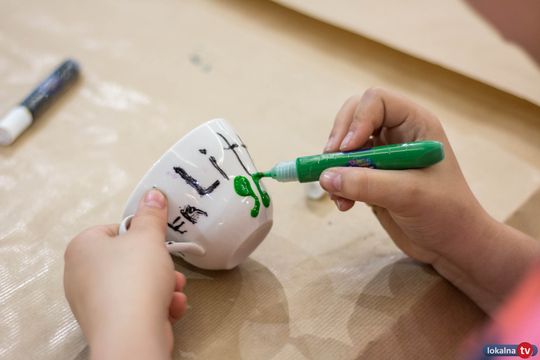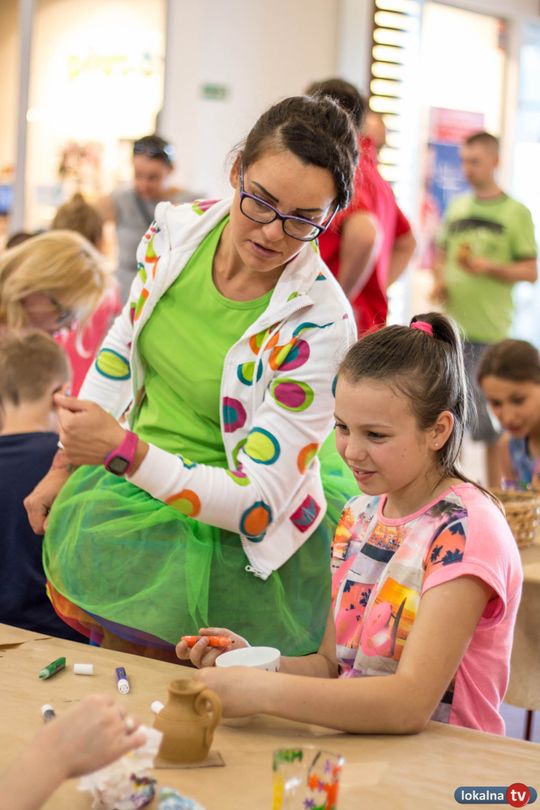 Oprócz lepienia i dekorowania glinianych cudeniek, uczestnicy niecodziennych warsztatów, własnoręcznie malowali porcelanę. Piękne wzory, kolorowe napisy i dedykacje, a do tego beztroska zabawa kolorami, przyciągały wzrok wszystkich klientów Galerii Ostrowiec.