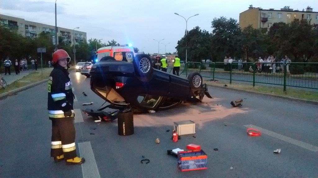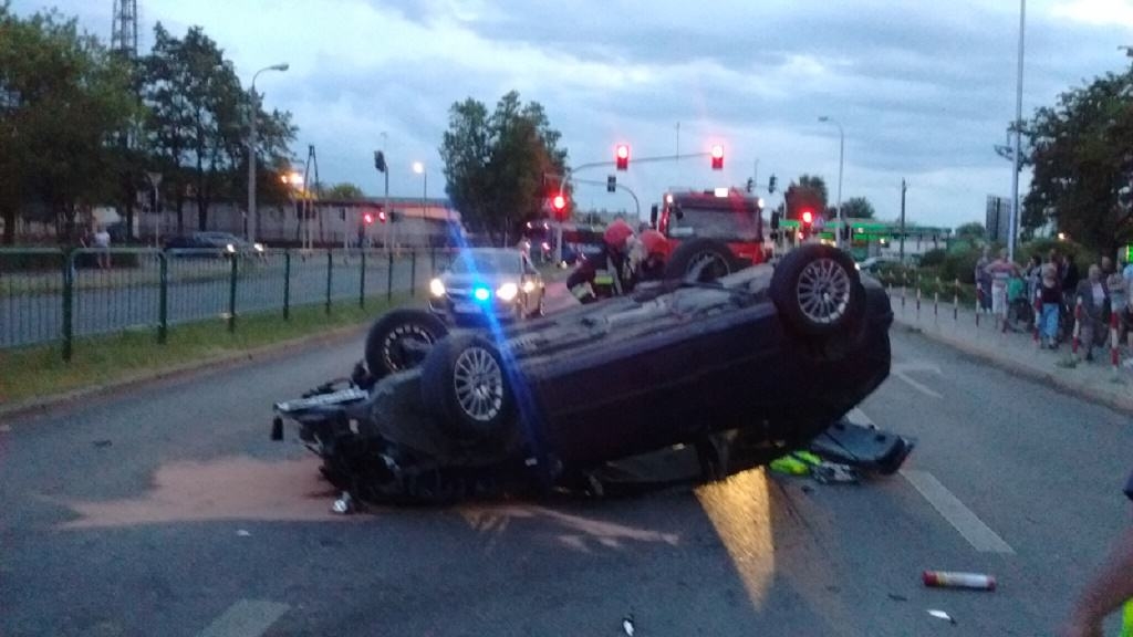 Po przybyciu na miejsce zdarzenia 3 zastępów straży pożarnej stwierdzono, że doszło do kolizji samochodu osobowego z barierkami odgradzającymi pasy jezdni. Samochodem podróżował sam kierowca, który wyszedł z pojazdu o własnych siłach. Samochód znajdował się na środku dwupasmowej jezdni na dachu. Na miejscu obecna była Policja oraz Zespół Ratownictwa Medycznego.