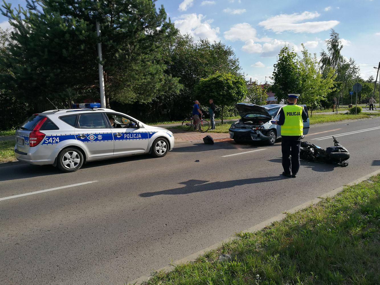 Wypadek w Ostrowcu Św. w rejonie skrzyżowania ulic: Grabowiecka, Kraszewskiego, Graniczna z udziałem jednośladu i samochodu osobowego.