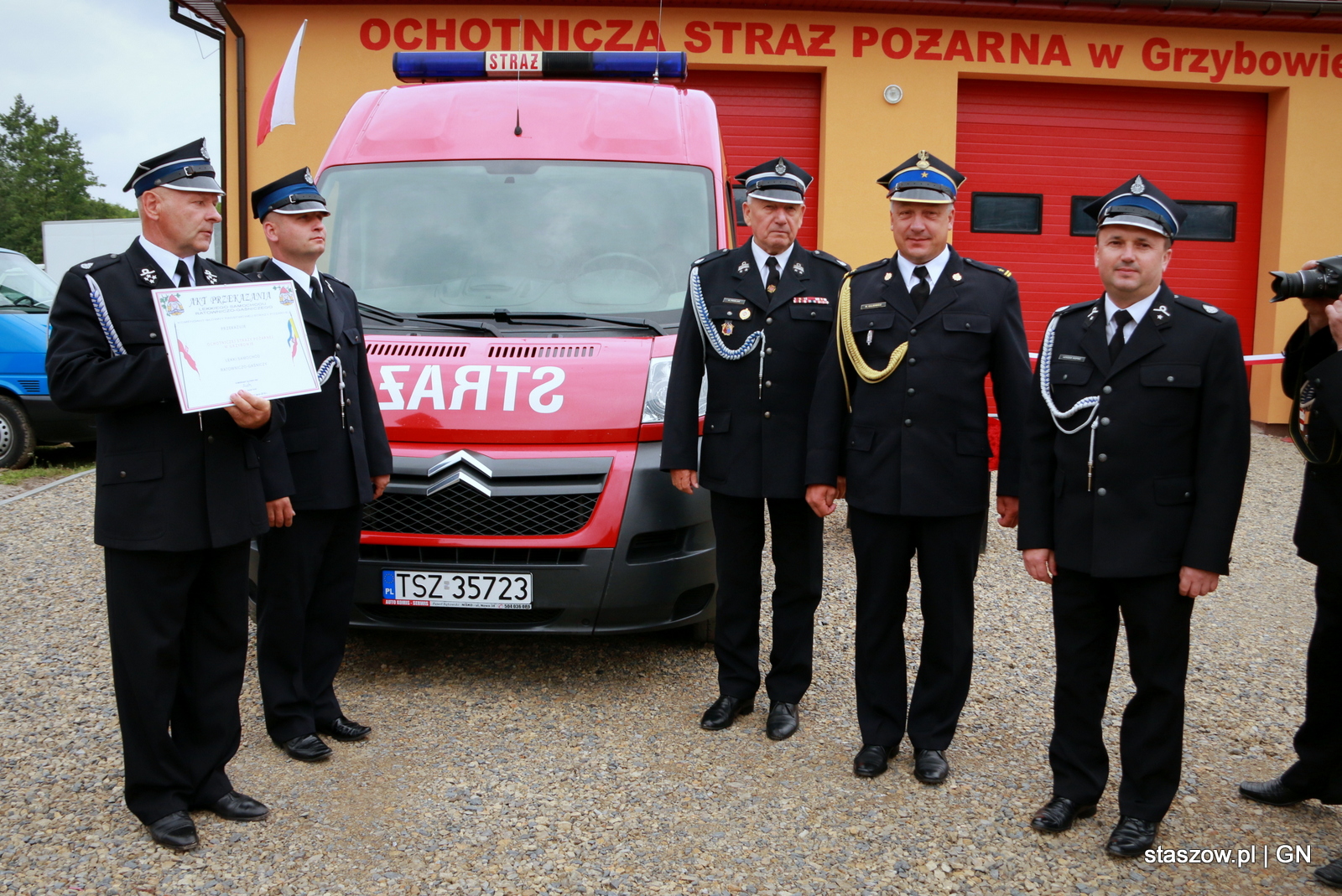 W sobotę 16 lipca odbyły się uroczyste obchody 85-lecia działalności Ochotniczej Straży Pożarnej w Grzybowie. Jubileusz był okazją do uroczystego otwarcia rozbudowanej dzięki staraniom Gminy Staszów strażnicy oraz przekazania samochodu dla jednostki, pozyskanego przez burmistrza Staszowa z Ośrodka Szkolenia PSP w Nisku.