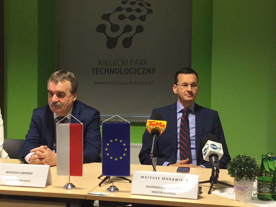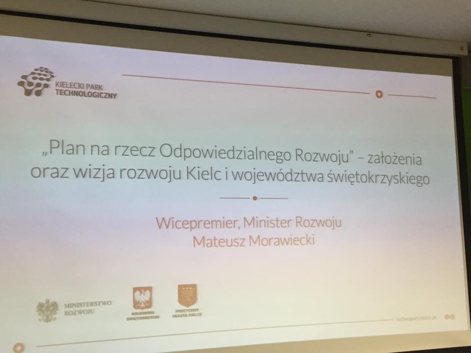 W środę, 3 sierpnia w Kielcach o godzinie 11.40, wicepremier Mateusz Morawiecki spotkał się z przedstawicielami świętokrzyskiego biznesu. W siedzibie Kieleckiego Parku Technologicznego zaprezentował założenia Planu na rzecz Odpowiedzialnego Rozwoju oraz przedstawił osobiście wizję rozwoju Kielc i województwa świętokrzyskiego. W planie wizyty Mateusza Morawieckiego ujęto zwiedzanie Kieleckiego Parku Technologicznego, a także spotkanie z młodymi innowacyjnymi przedsiębiorcami skupionymi w KPT.