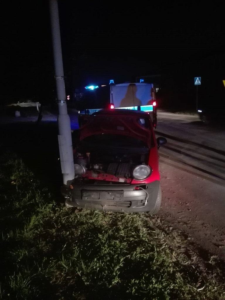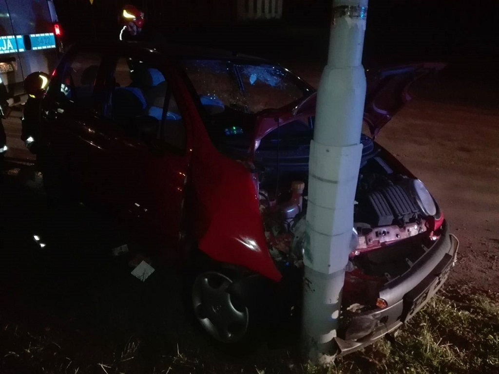 Po przybyciu na miejsce zdarzenia straży pożarnej stwierdzono, że pojazd marki Daewoo Matiz uderzył w stojący na poboczu słup oświetleniowy. Na miejscu obecna była policja. Z informacji uzyskanych od Policji wynikało, że pojazdem prawdopodobnie podróżowało dwóch mężczyzn, którzy zbiegli z miejsca zdarzenia.