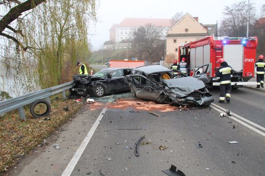 Jak wynika ze wstępnych ustaleń, kierujący samochodem marki Alfa Romeo z nieustalonych przyczyn zjechał na przeciwległy pas ruchu gdzie zderzył się czołowo z prawidłowo jadącym pojazdem marki Audi. Obaj kierowcy oraz czterech pasażerów zostało przewiezionych do szpitala.