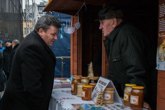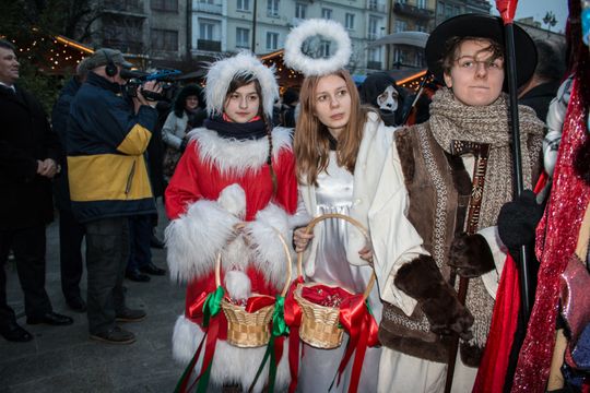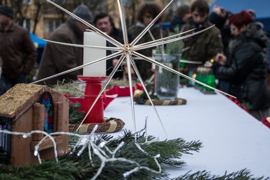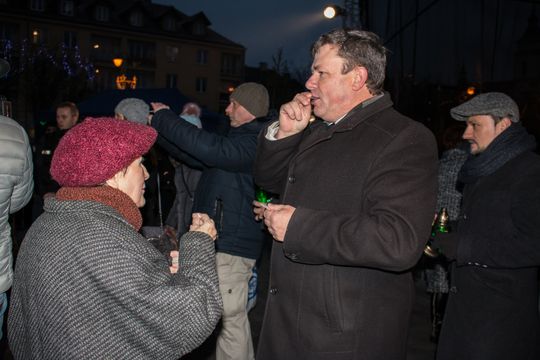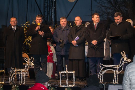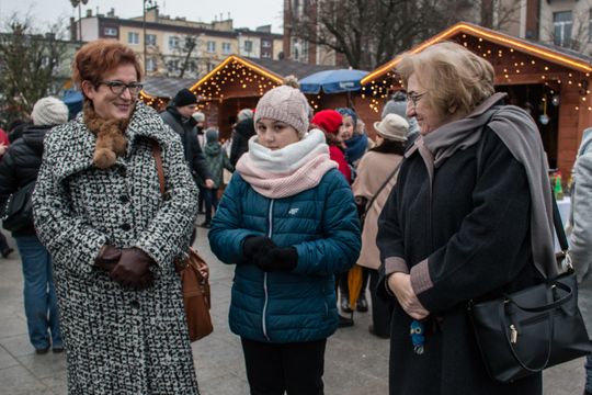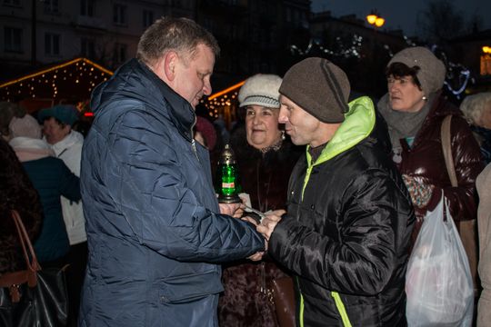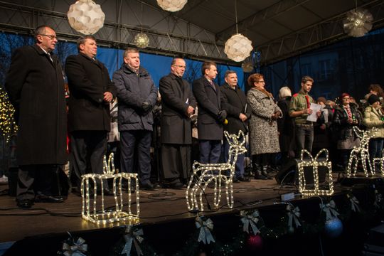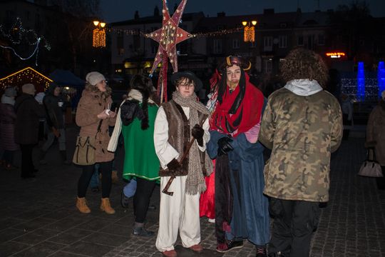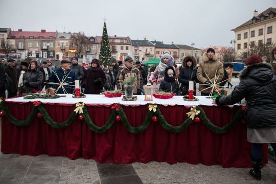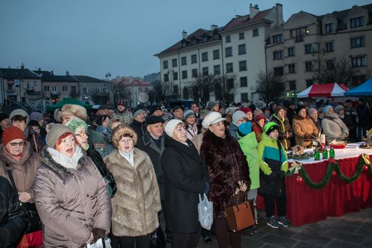 Spotkanie Wigilijne na rynku miasta obfitowało w liczne atrakcje były m.in. ciepłe posiłki, słodkości, a także kiermasz ozdób świątecznych czy wspólne śpiewanie kolęd.