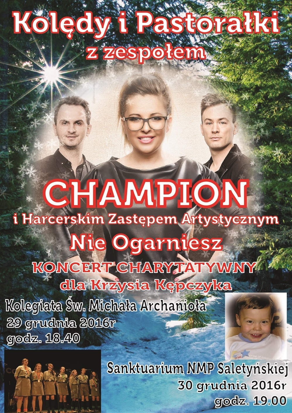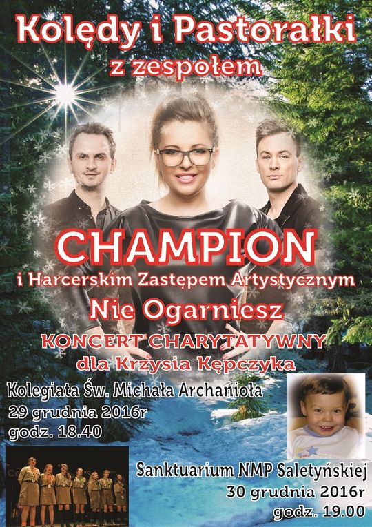 Zespół „Champion” wraz z Harcerskim Zastępem Artystycznym „Nie ogarniesz” zapraszają na dwa specjalne koncerty kolęd i pastorałek na rzecz Krzysia Kępczyka.