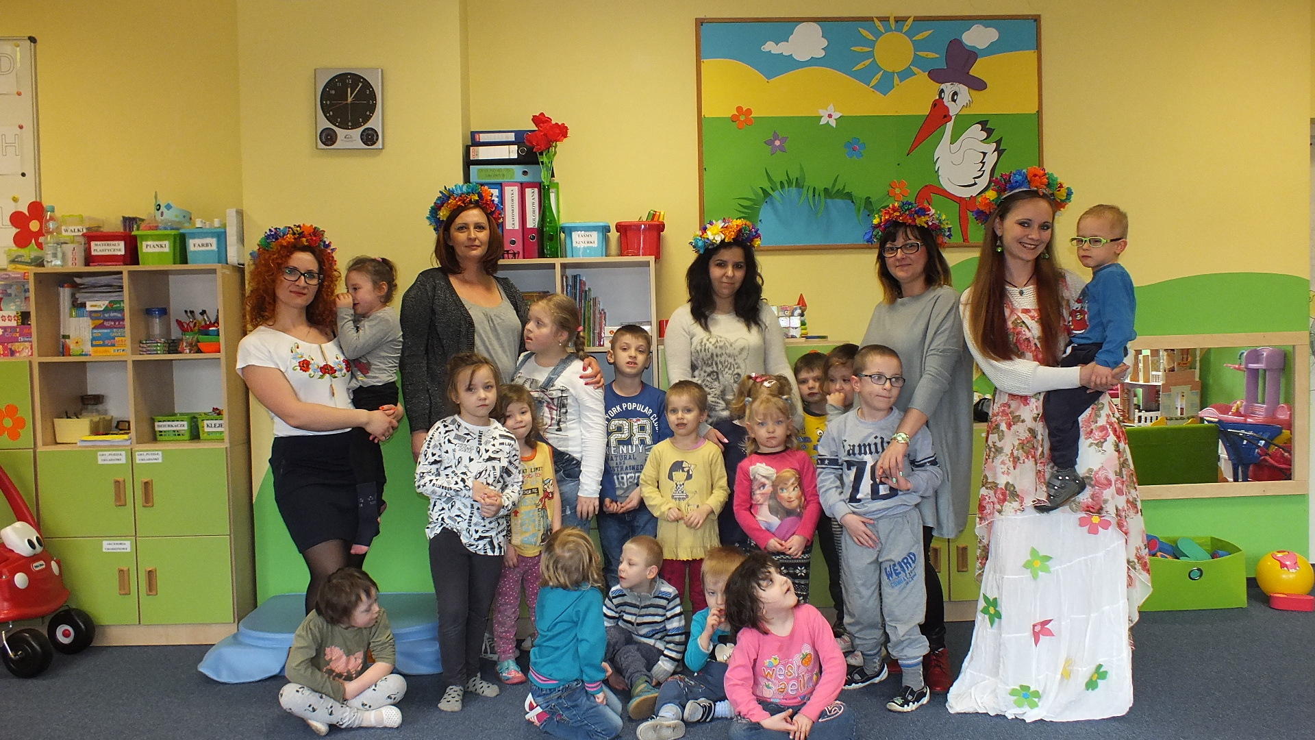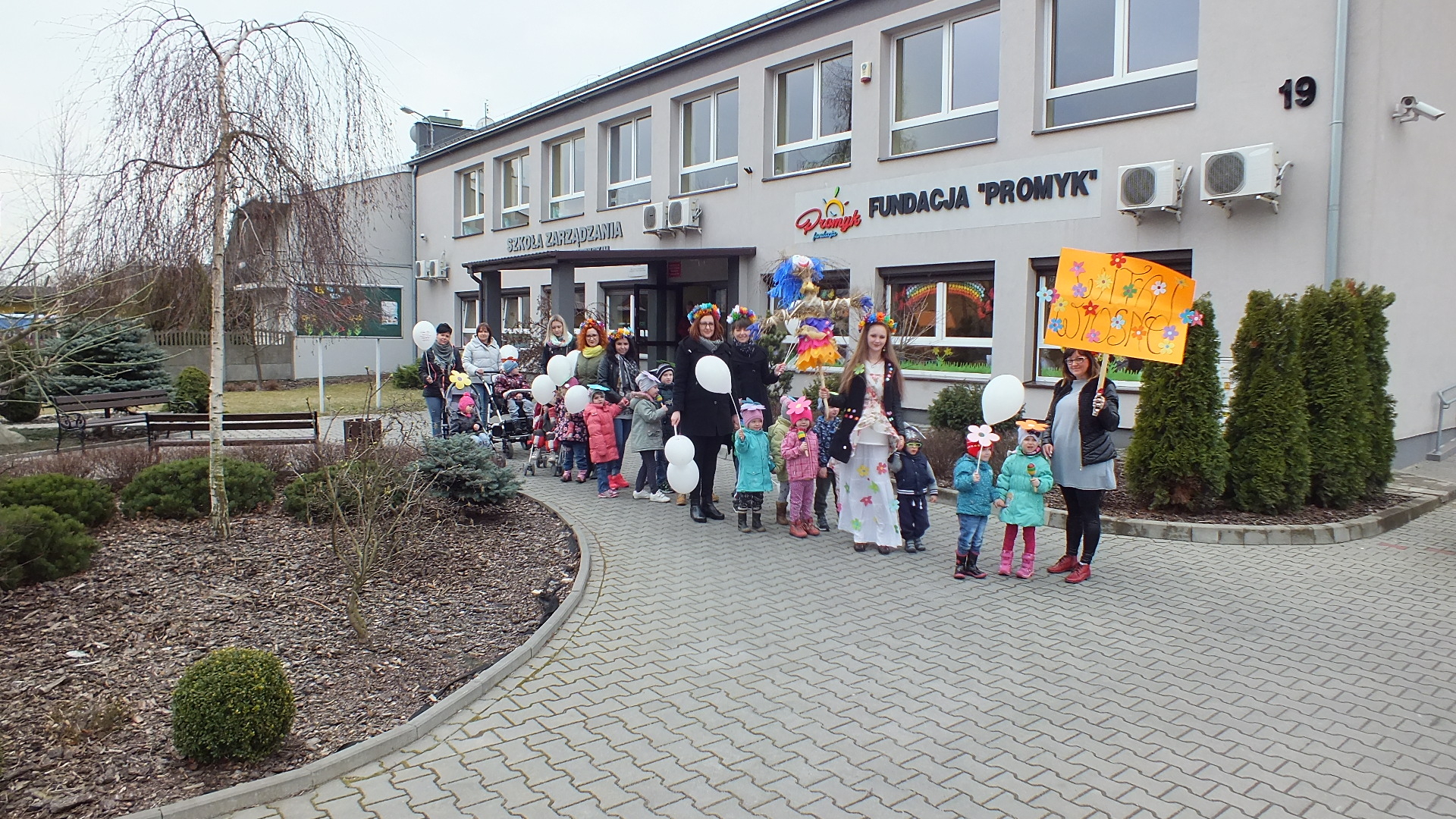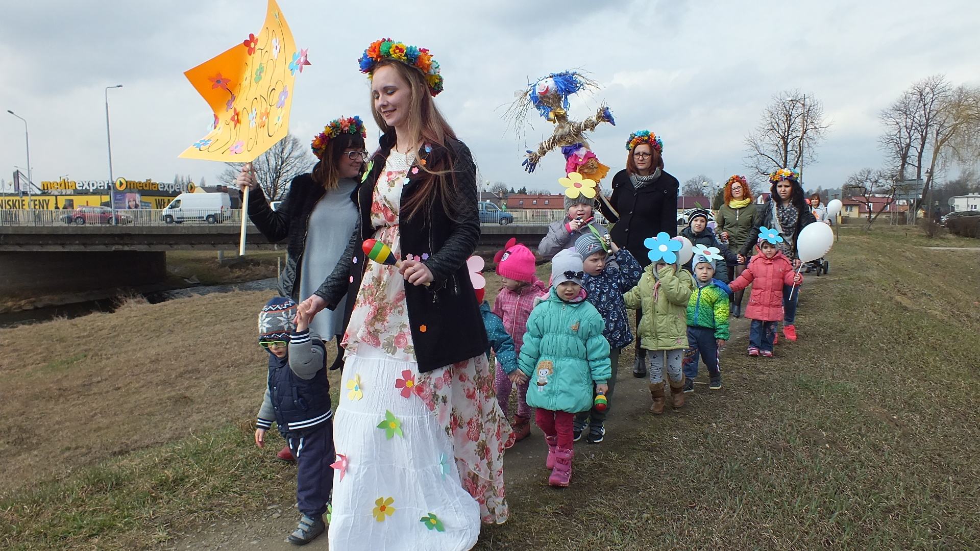 Wspólnie z paniami dzieci wykonały ze słomy i kolorowej bibuły Zimową Pannę Marzannę. Dołączyły do tego transparent z napisem "WITAJ WIOSNO!". W tym dniu obowiązkowo każdy na swoim stroju musiał mieć wiosenne akcenty. Przedszkolaki miały mieć na czapeczce dużego kwiatka, zaś panie kolorowe wianki na głowach.